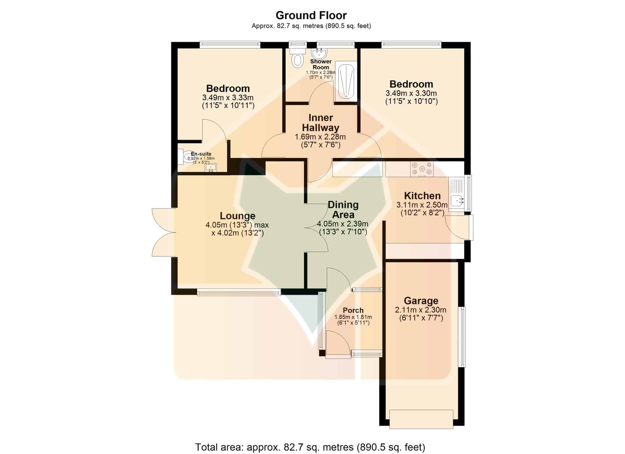 Dimensions: 3.49m x 3.3m.