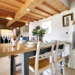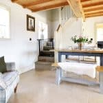 With twin rear uPVC double glazed windows, a staircase allowing access to the first floor accommodation with open spell balustrading, matching newel post and contrasting handrail, understairs storage, continuation of stone tiled flooring, exposed beamed ceiling and doors through to the sitting room and an opening through to;