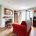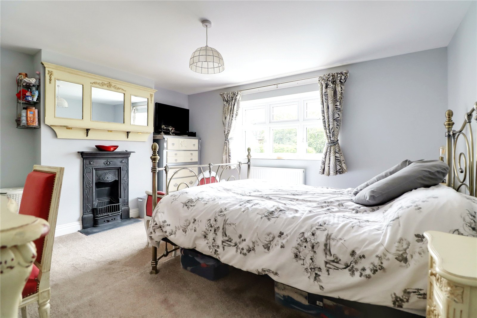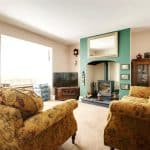 Plus a projecting deep uPVC double glazed square bay window, ceramic period style radiator, handsome inset multi fuel cast iron stove on a raised slate flagged hearth, two double wall light points and TV point.