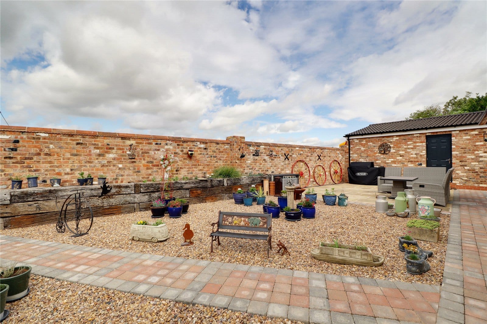The property occupies a prominent and spacious plot having being beautifully landscaped and being immaculately kept with the front and side having hedging boundary walls behind solid oak sleepers and with the front garden being pea pebbled laid with raised vegetable beds, pleasant pebbled seating areas with a large block and gravel laid driveway providing extensive parking for a multitude of vehicles with large swan neck gating leading to a further parking area and access to the garaging. A block paved pathway from the front leads between the driveway and planted garden with ramped access to the front entrance door and continues into the rear. The rear garden enjoys excellent privacy with rebuilt rustic walled boundaries, security gated access to Battle Green, raised sleeper beds and provides a slate pathed patio, matching block perimeter pathways and provides easy access to the garaging and workshop.