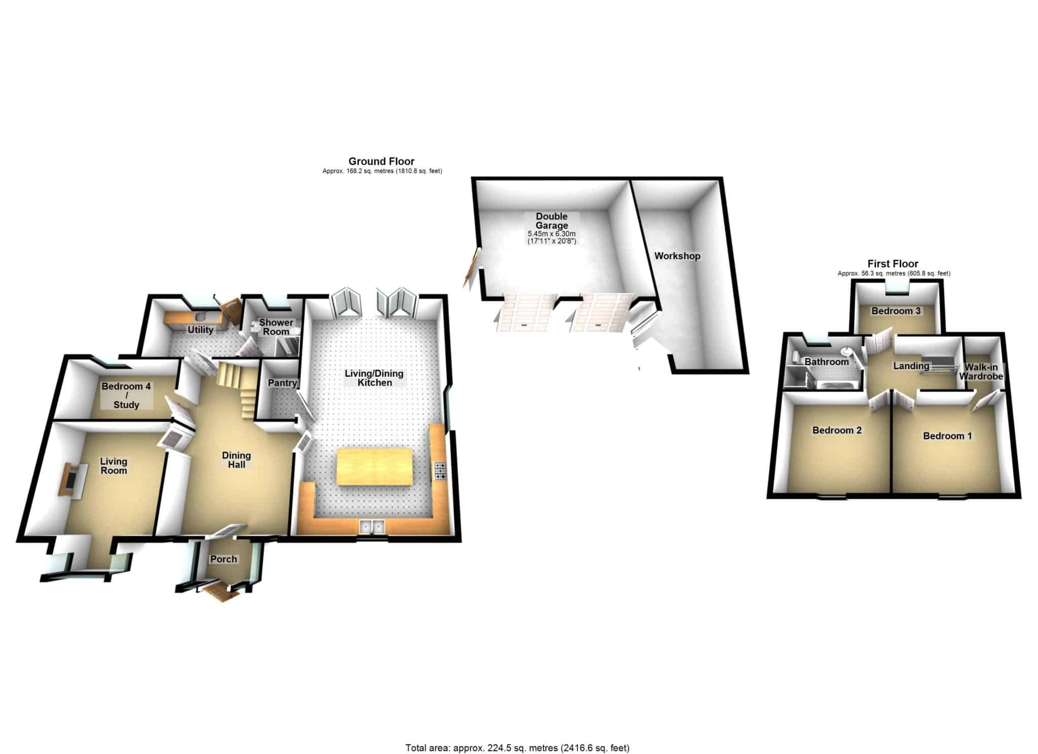 - DEEP DRIVEWAY WITH DOUBLE GARAGE & WORKSHOP