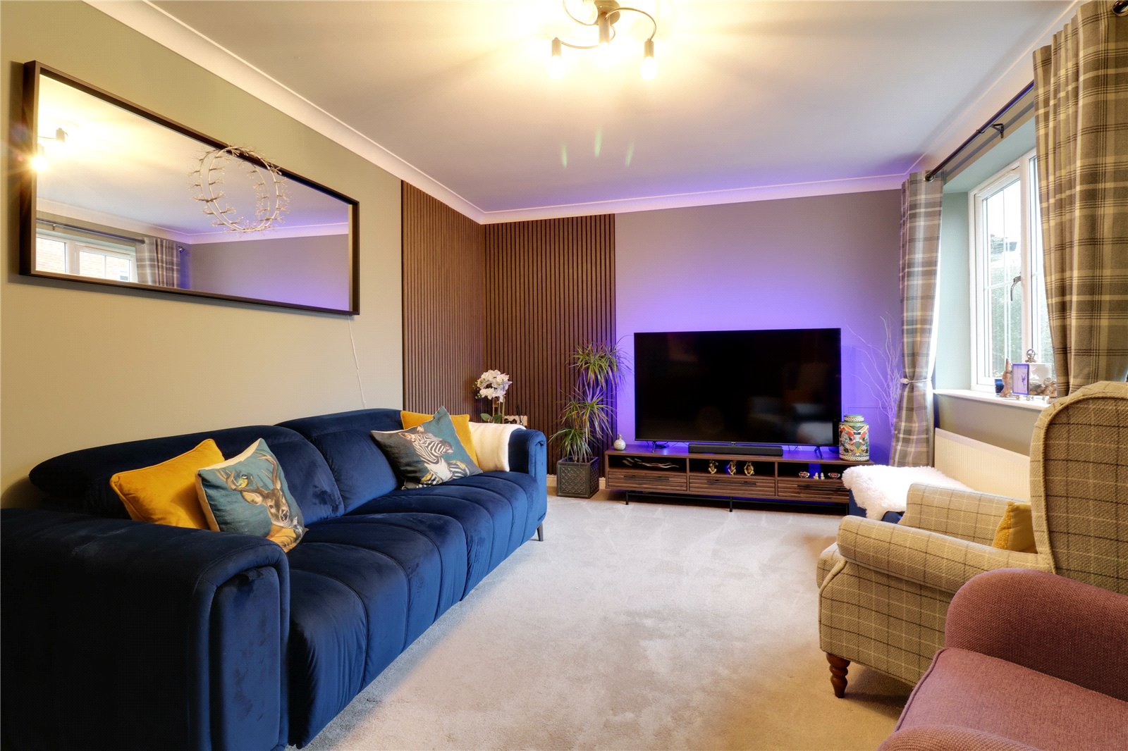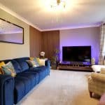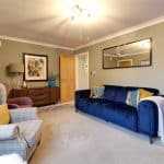 Dimensions: 3.38m x 5.1m. With a front uPVC double glazed window, wall to ceiling coving, TV input and feature panelling to the walls, a wall mounted electronic Alpha thermostatic control for the heating and a further oak door allows access through to;