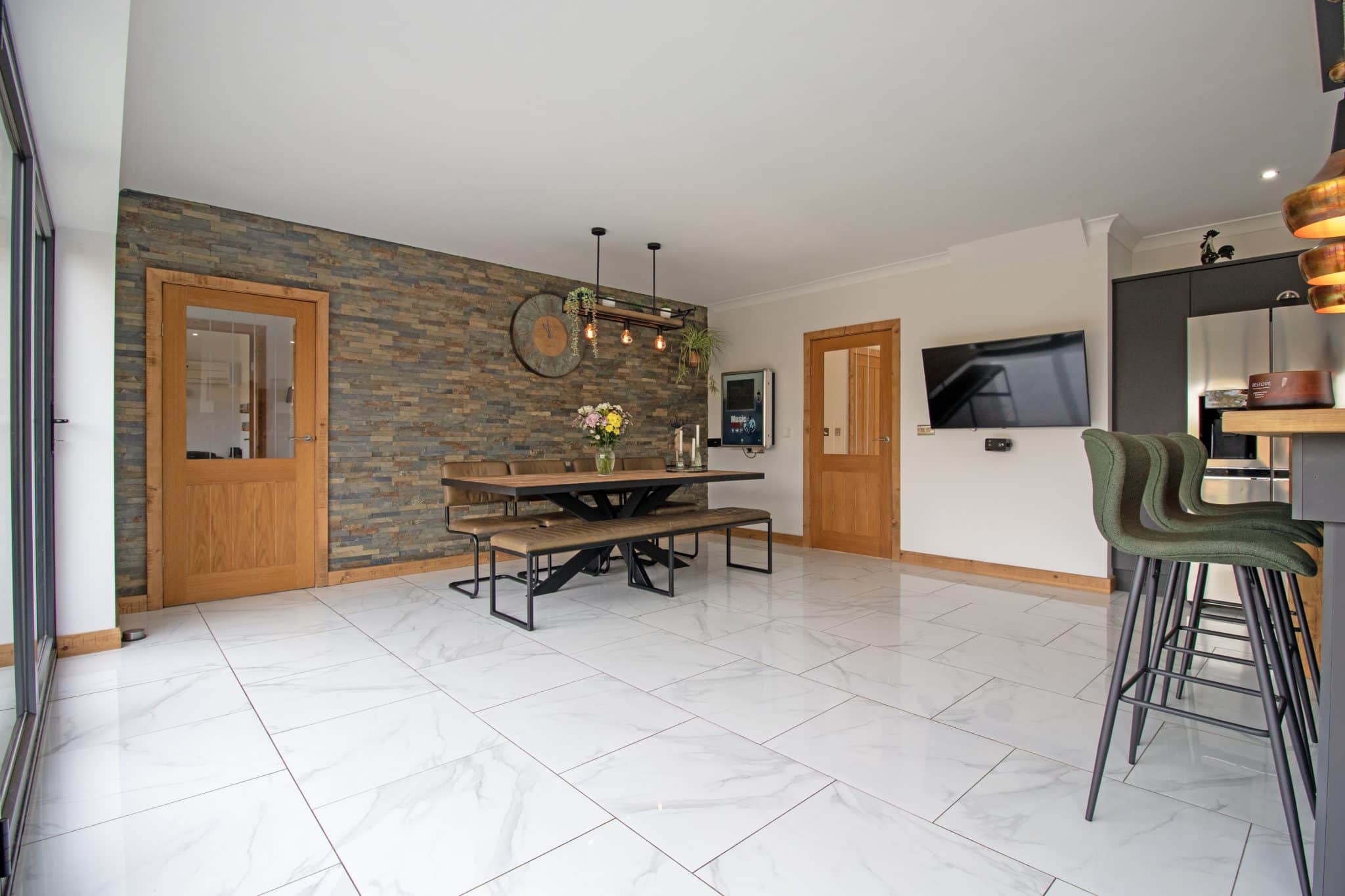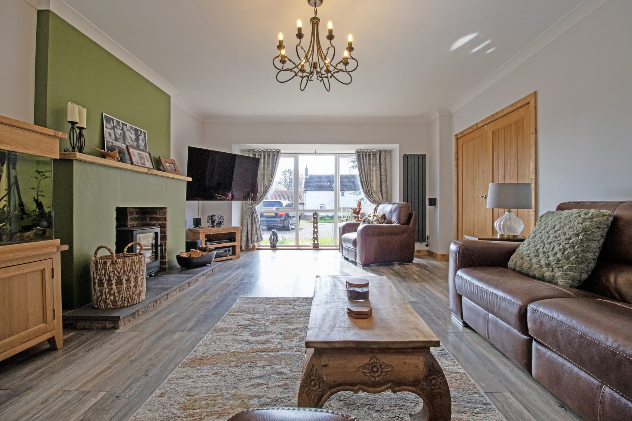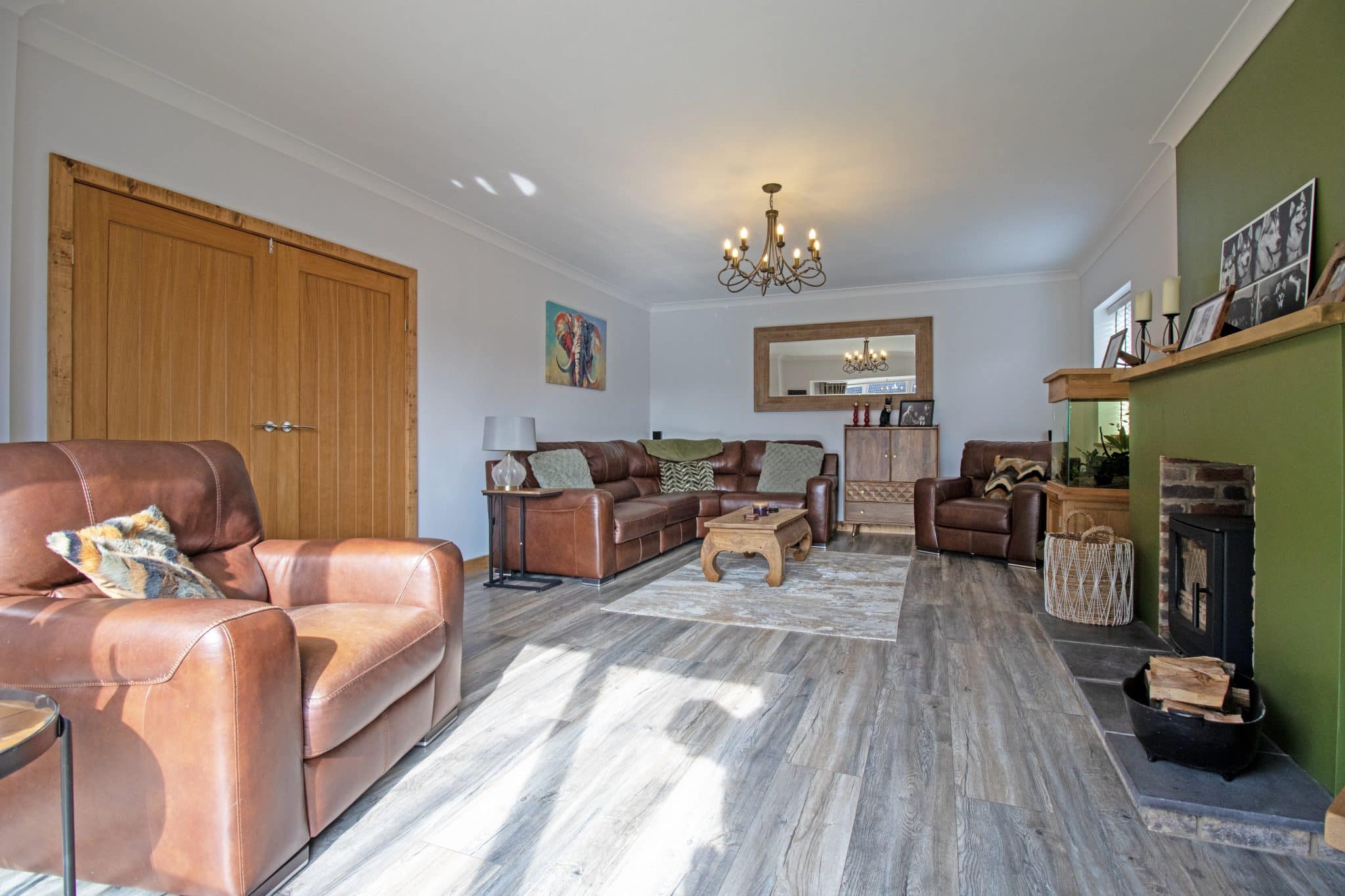 The ground floor accommodation is both spacious and highly versatile, offering a selection of reception rooms perfectly suited to modern living. The main lounge provides a warm and inviting retreat, and is complemented by elegant finishes and built-in storage. Additional reception spaces include a separate sitting room and a versatile office or further reception room, ideal for home working or family flexibility.