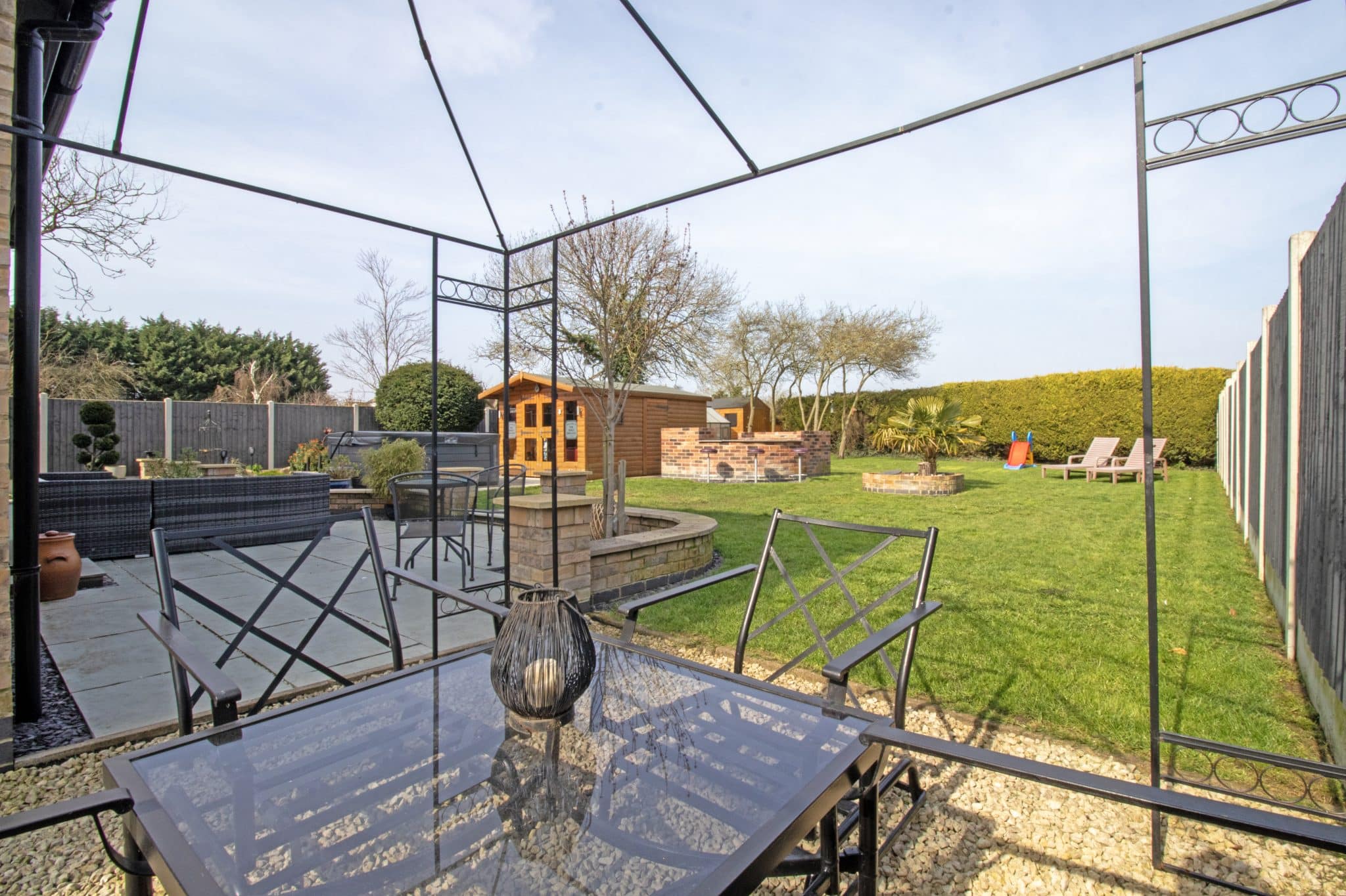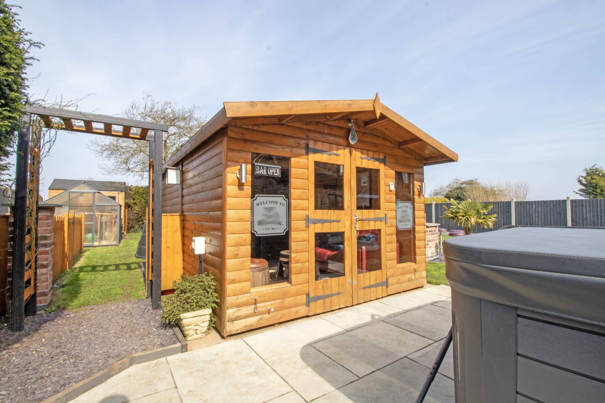 Externally, the property continues to excel. The rear garden is a true sanctuary—generous in size, private, and meticulously landscaped. Predominantly laid to lawn with mature planting and ornamental trees, it offers the perfect setting for both relaxation and family life. Multiple patio areas provide ideal spaces for outdoor dining and entertaining, while additional features include a greenhouse, storage shed, and a superb fitted barbecue area complete with a bar. The bar benefits from power and lighting, creating an outstanding space for hosting family and friends.