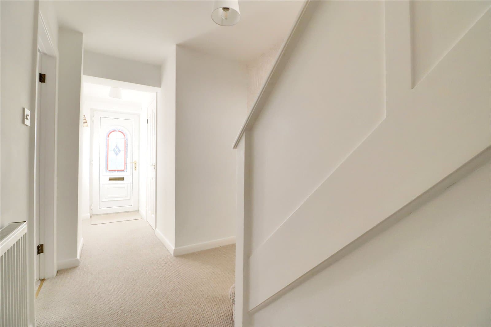 Enjoys a front uPVC double glazed door with inset patterned and leaded glazing, staircase leads to the first floor accommodation and doors to;