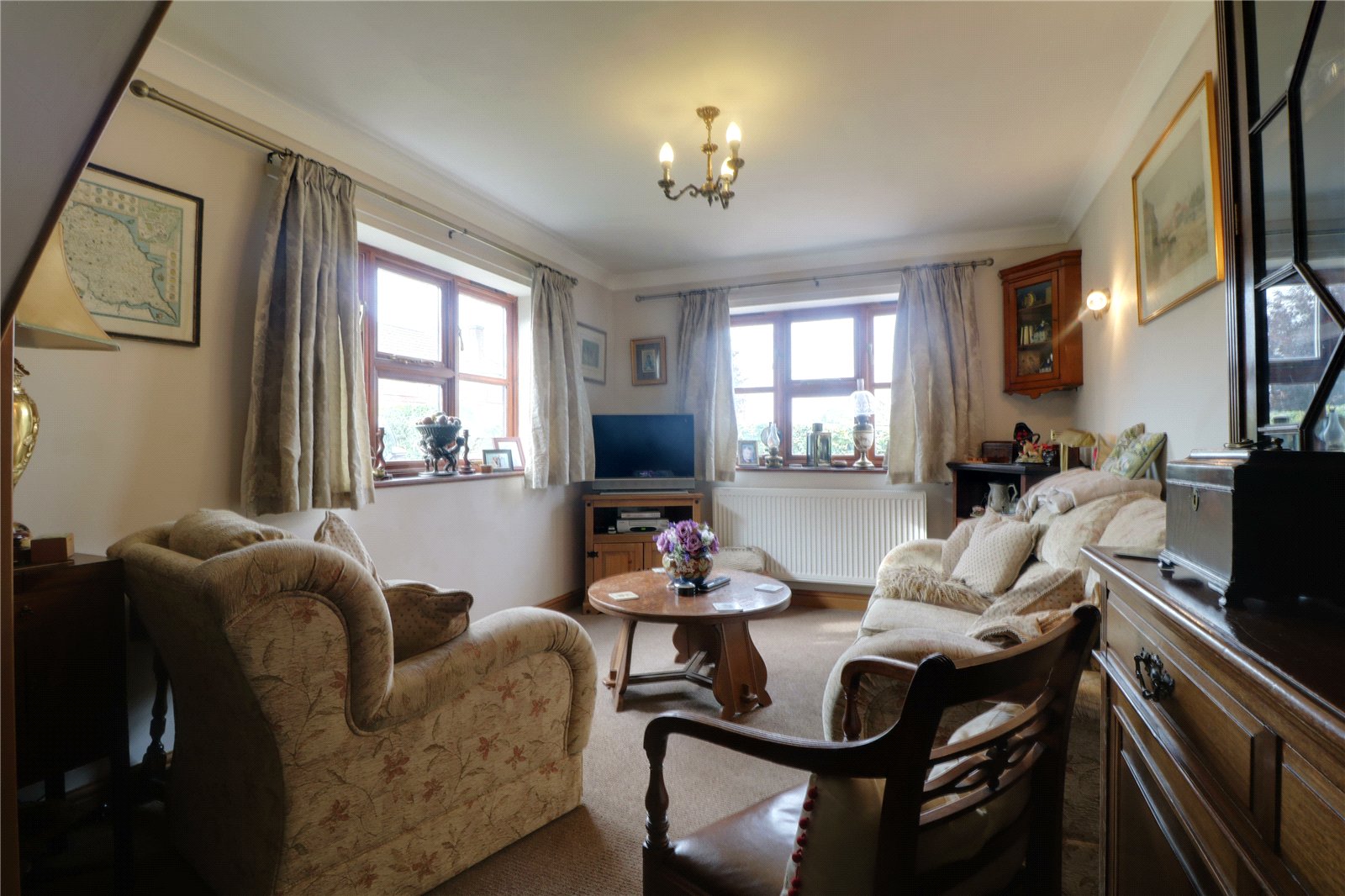 With a front hardwood double glazed window and wall to ceiling coving.