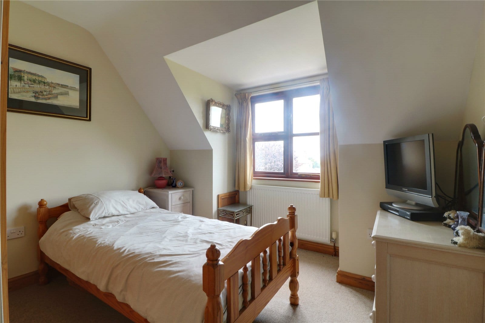With a front hardwood double glazed window, oak style laminate flooring, storage in the eaves and TV input.