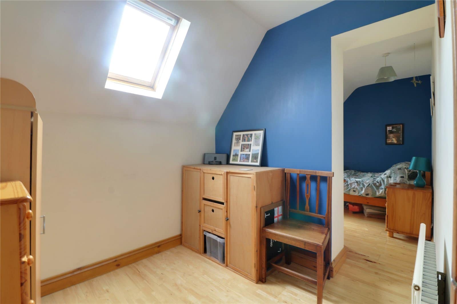 With a rear Velux skylight and laminate flooring.