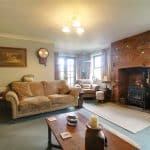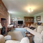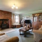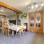 With front twin hardwood glazed doors allowing access to the patio area and two side hardwood double glazed windows, a feature open bricked Inglenook fireplace with multi burning stove with slate style hearth and oak mantel, wall to ceiling coving and TV input.
