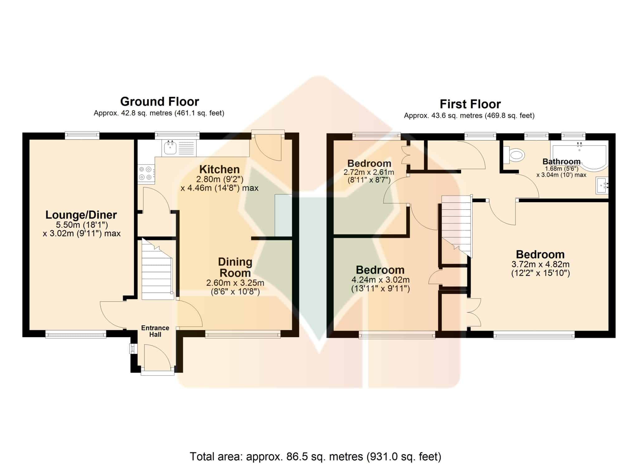 Kitchen 9' 2" x 14' 8" (2.80m x 4.46m)