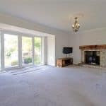 With uPVC double glazed French doors allowing access to the rear garden and adjoining uPVC double glazed windows, central feature log burning fireplace with attractive surround, wall to ceiling coving, numerous electric socket points and rosette around the main ceiling light.