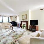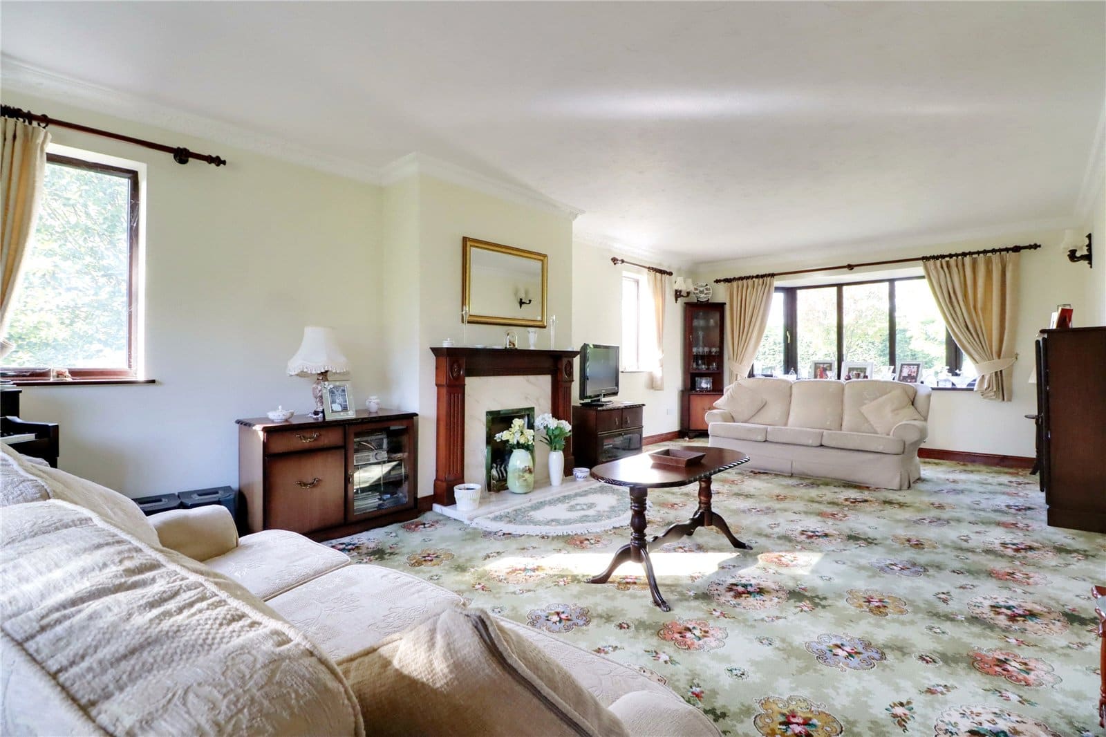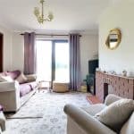 Enjoying a multi aspect with front, rear and side uPVC double glazed windows, wall to ceiling coving, a feature gas coal effect fireplace with marbled hearth. matching backing and decorative suround and mantel, TV input and twin sliding hardwood glazed doors allows access to;