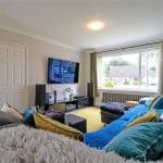 Externally, the property enjoys a large lawned frontage with a driveway offering ample off-road parking and access to the detached 1.5-car garage. To the rear, the enclosed garden is of excellent size—mainly laid to lawn with a paved patio area ideal for outdoor dining and entertaining.