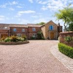 The property is approached and allows vehicle access between two brick pillars with coping tops with remote electrically operated decorative iron gates onto a substantial pebbled driveway allowing access to garaging and providing extensive parking for numerous vehicles, there is a feature central circular stone raised planted border with fountain with a sheltered front door via a stone canopy and access to either side. To the side the property has an enclosed astroturf garden with flagged pathways allowing an ideal area for dogs and has a concealed oil tank, lawned gardens surrounds the side and rear with brick and stone walling to the side and with a traditional three rail rear boundary fencing allowing views across paddock land. The principal gardens are lawned with a number of mature planted trees, a flagged pathway surrounding the perimeter of the property and leading to a seating area. From the seating area a curved flagged pathway leads to a feature central entertaining space with barbeque/firepit and slate roofing providing an all weather area.