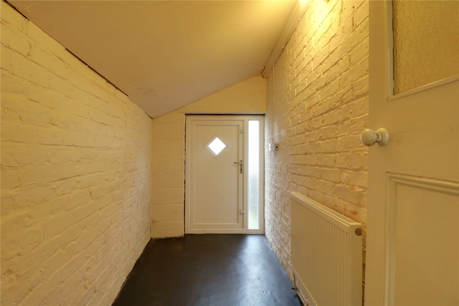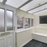 Includes a front uPVC double glazed entrance door with frosted glazing and adjoining window, a side uPVC double glazed window, a polycarbonate lean to roof, tiled flooring and a period hardwood glazed door allows access through to;
