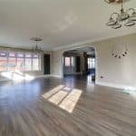 Dimensions: 5.12m x 3.21m. Enjoying a dual aspect with front and side uPVC double glazed and leaded windows, laminate flooring, detailed wall to ceiling coving, inset ceiling spotlights and broad opening through to;