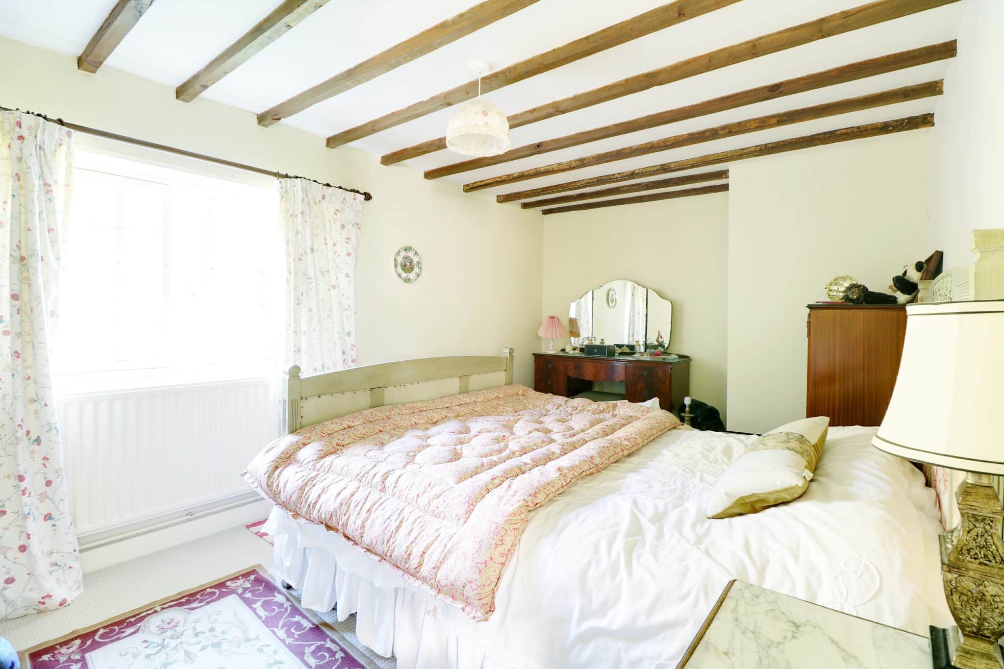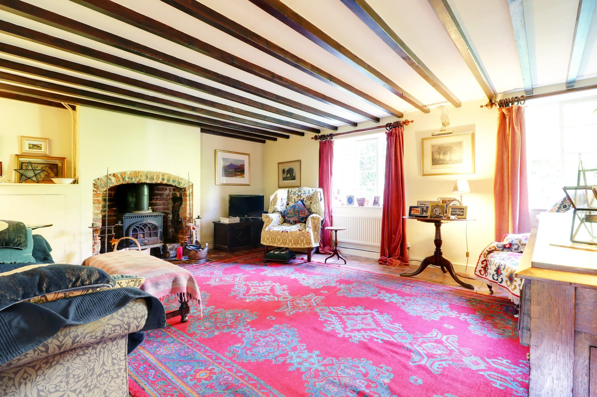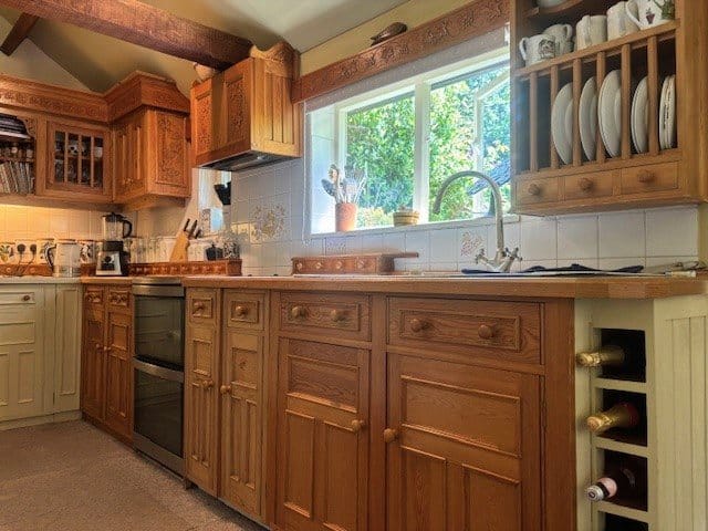 The mature, extensively planted, private gardens are fully fenced. They are designed to be attractive to wildlife and include attractive easily maintained borders, lawns, meadow area, trees and a garden pond, timber stable and restored log shed and store. The grade 2 listed cottage is heated by a modern gas fired central heating system.