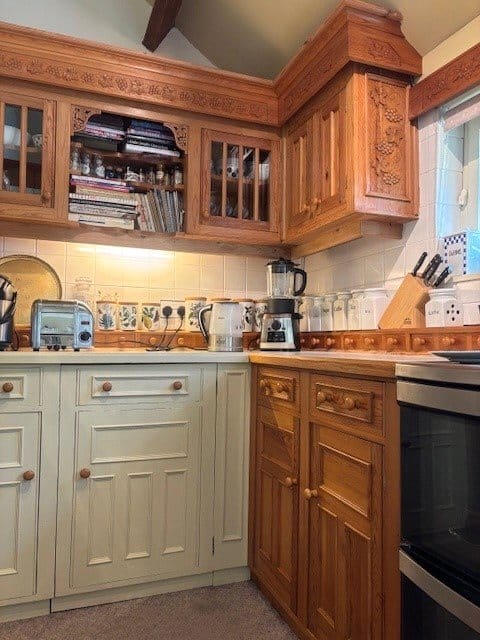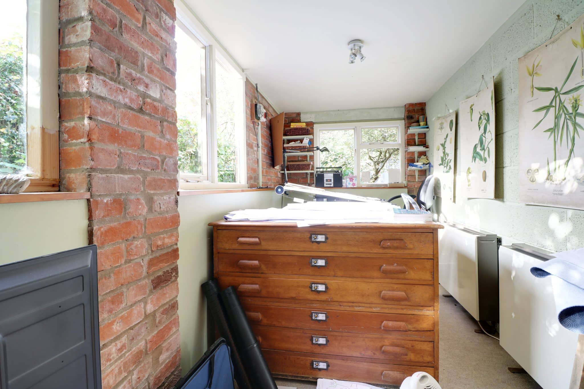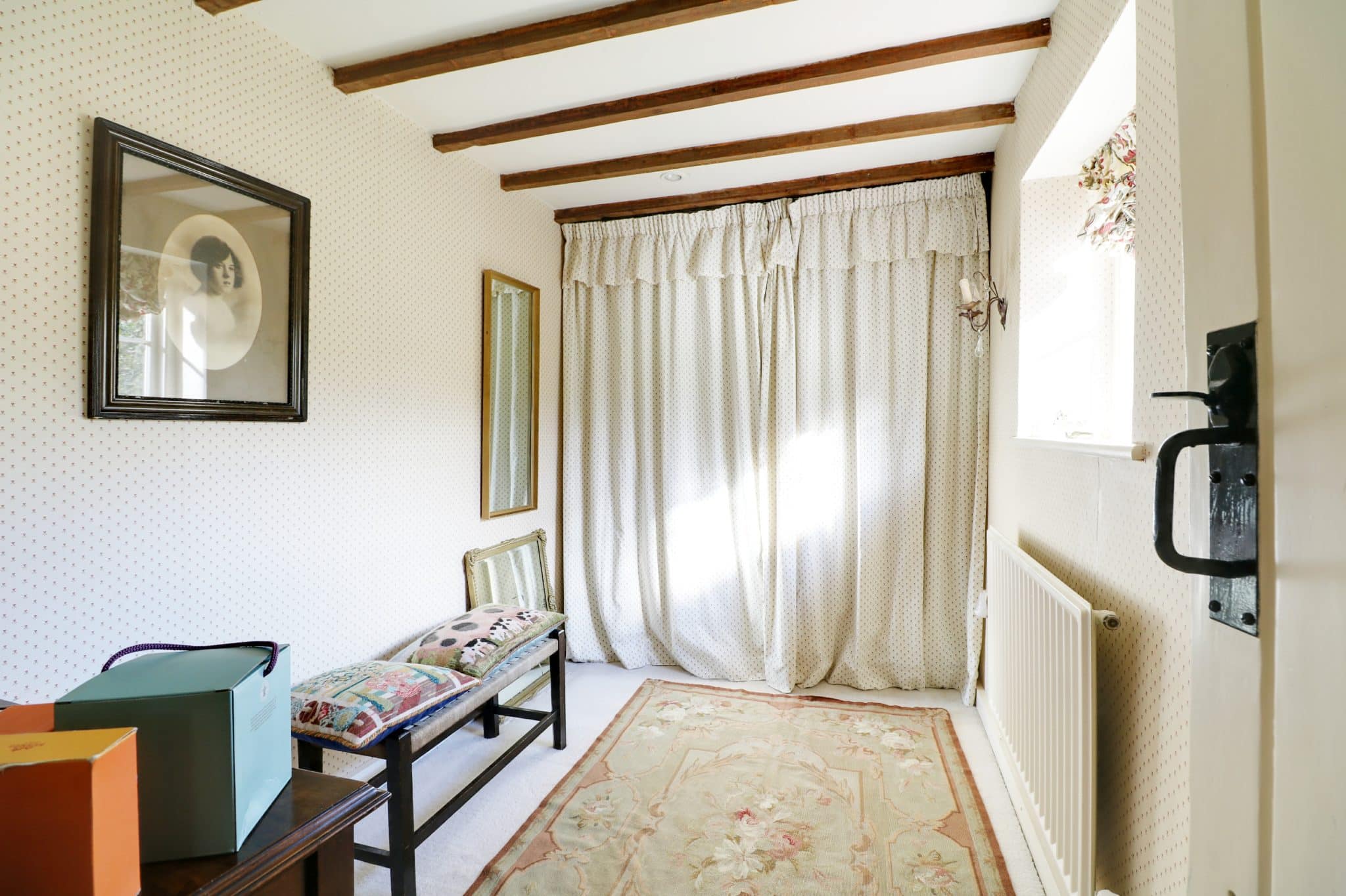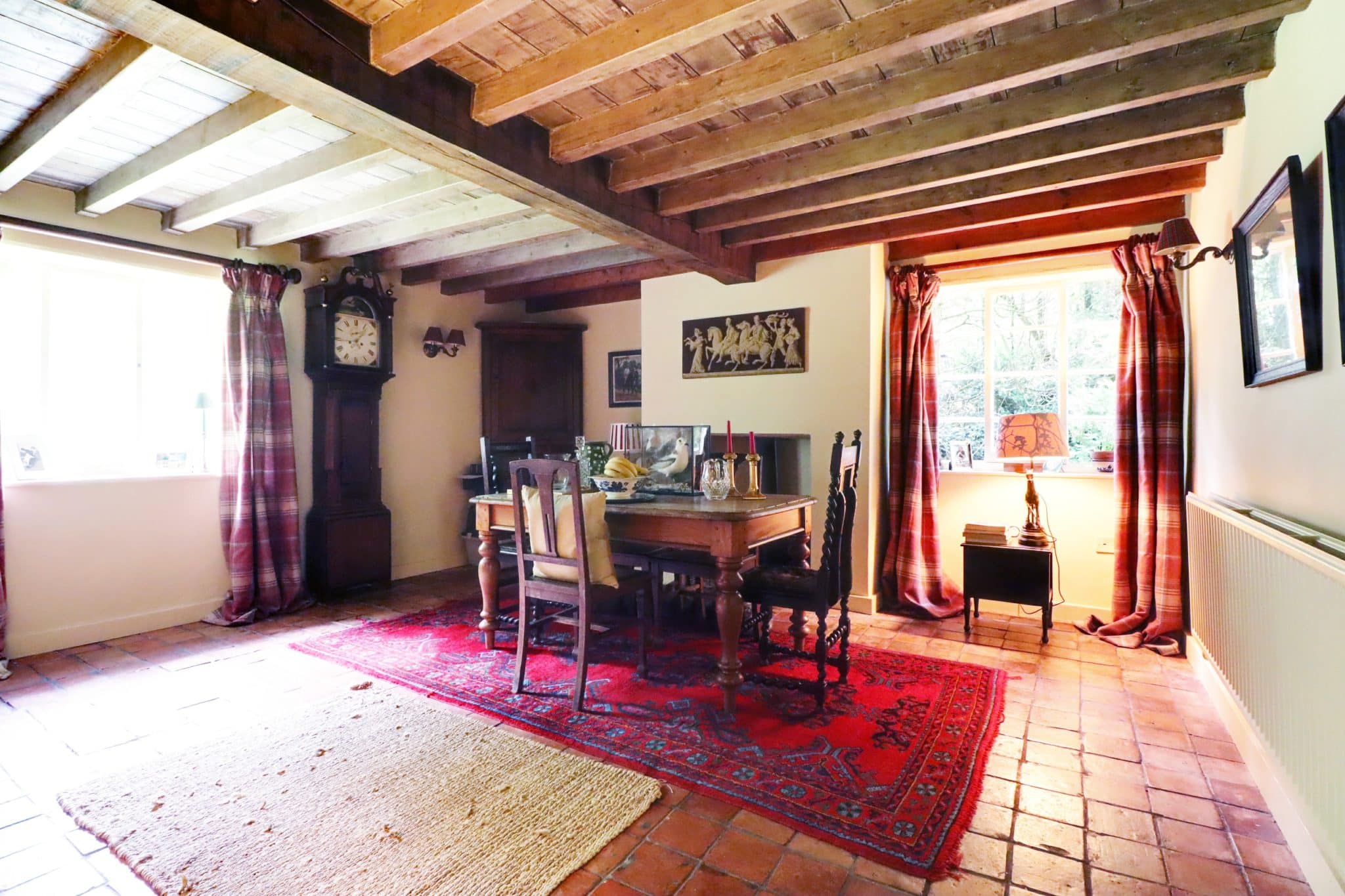 The mature, extensively planted, private gardens are fully fenced. They are designed to be attractive to wildlife and include attractive easily maintained borders, lawns, meadow area, trees and a garden pond, timber stable and restored log shed and store. The grade 2 listed cottage is heated by a modern gas fired central heating system.