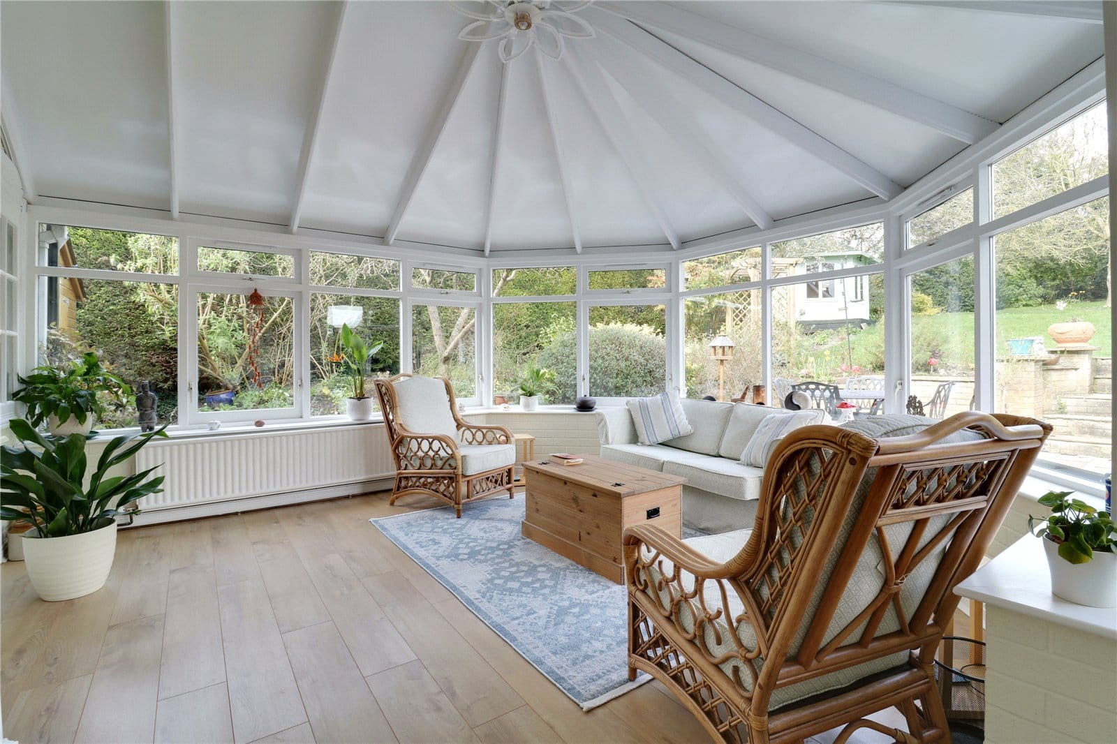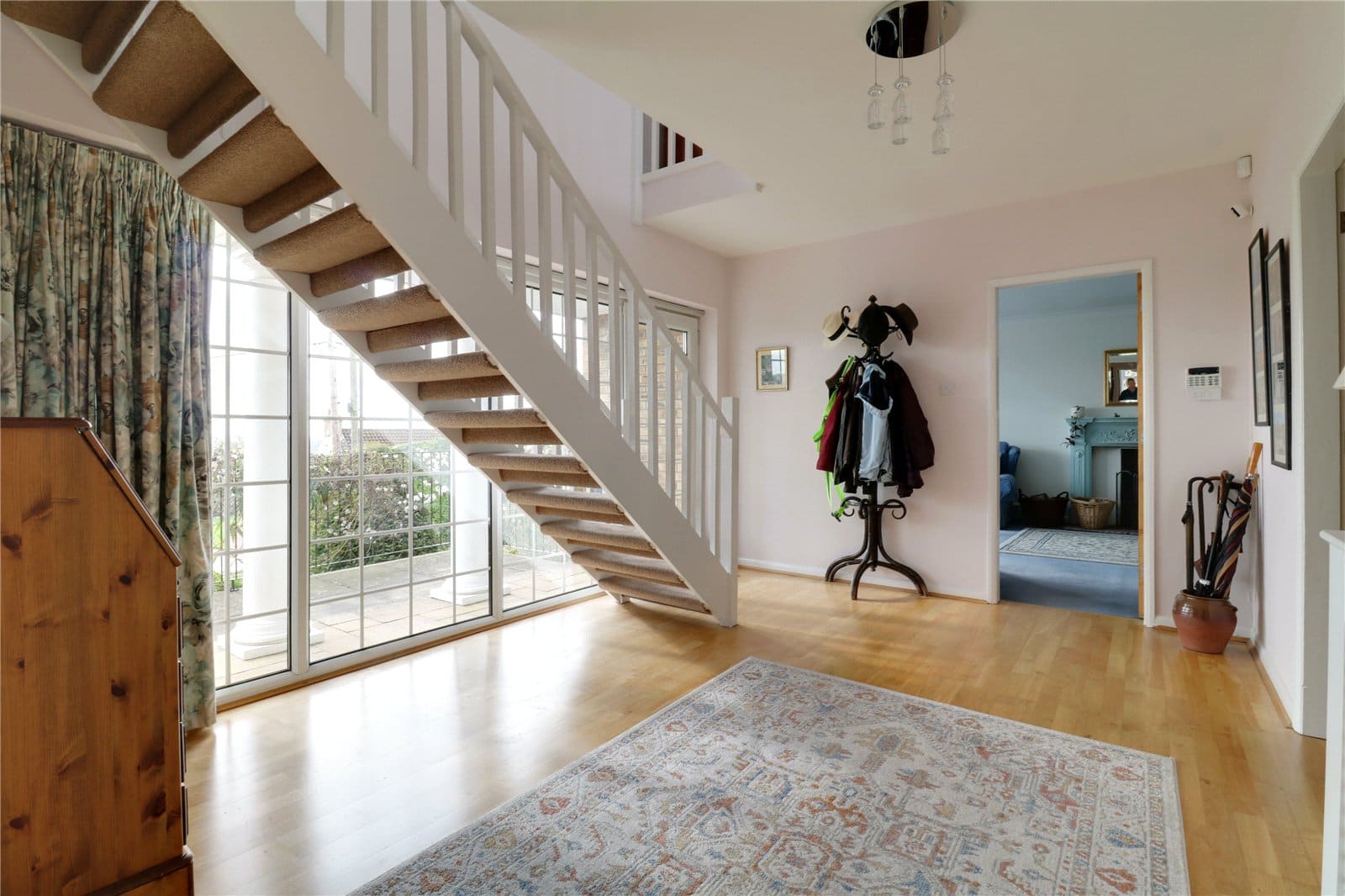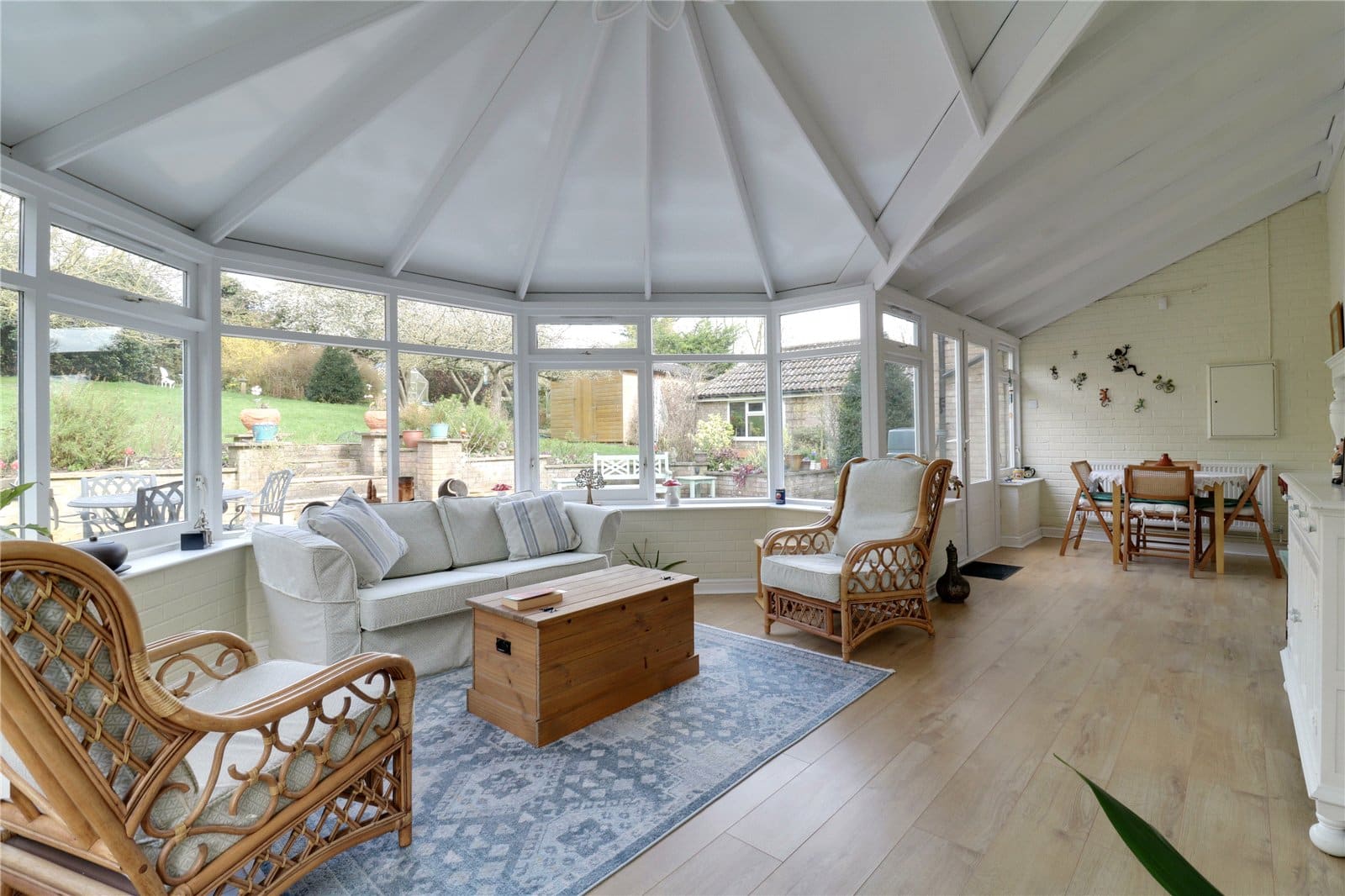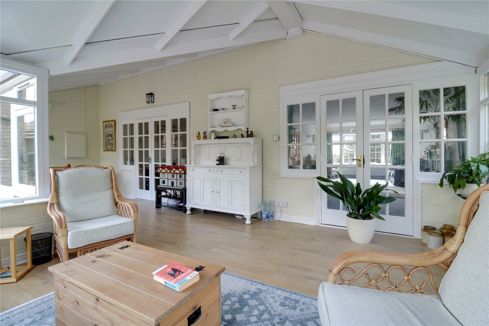 Beautifully presented throughout, the property provides spacious and versatile accommodation ideally suited to family life or professional buyers seeking generous living space. A welcoming central reception hallway leads to an impressive main living room, complete with a feature fireplace and elegant twin doors opening into a superb conservatory. Enhanced by a recently installed Thermotec roof, this light-filled space offers year-round enjoyment while overlooking the landscaped gardens.