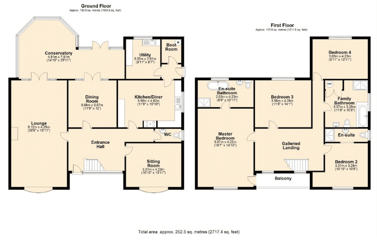 Double doors from the conservatory lead seamlessly into a formal dining room, ideal for entertaining, while a separate front-facing sitting room provides additional flexibility as a snug, office, or playroom. The ground floor is further complemented by a stylish breakfast kitchen, utility room, boot room, and a convenient cloakroom/WC.