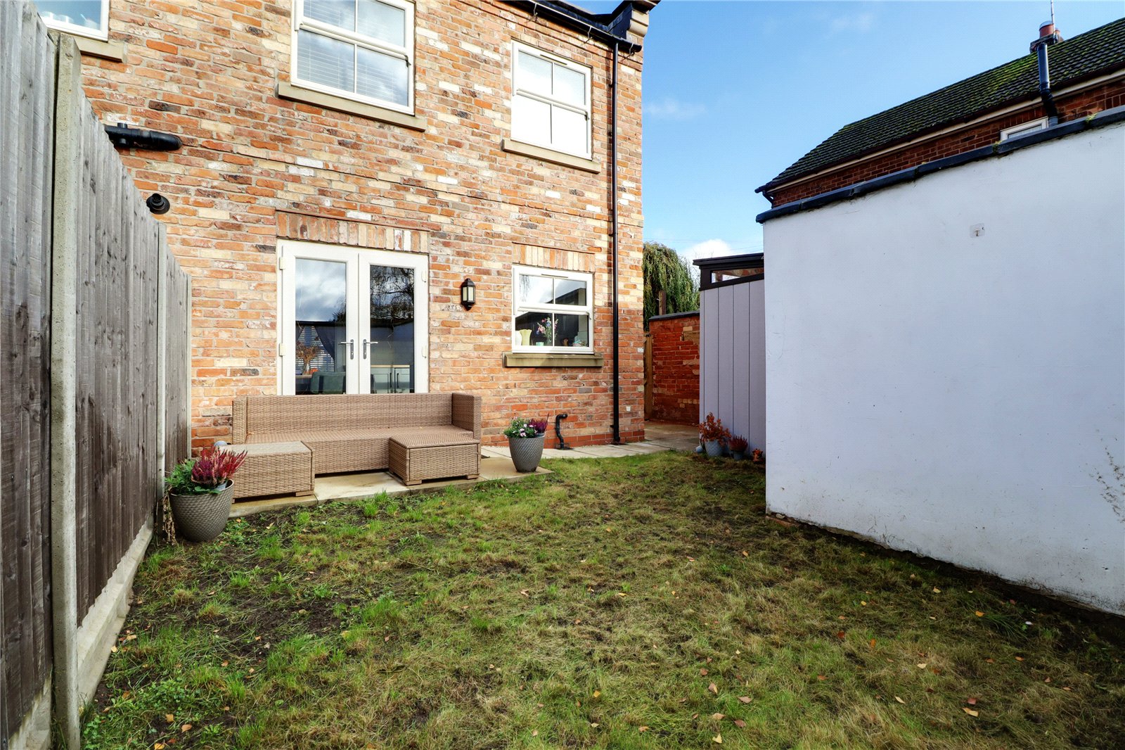 The property enjoys hardstanding front driveway with a broad side access leading to an enclosed private south facing garden being principally lawned with seating area.