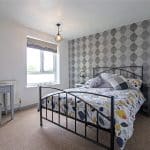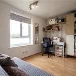 With front uPVC double glazed window and bank of fitted wardrobes/storage cupboards.