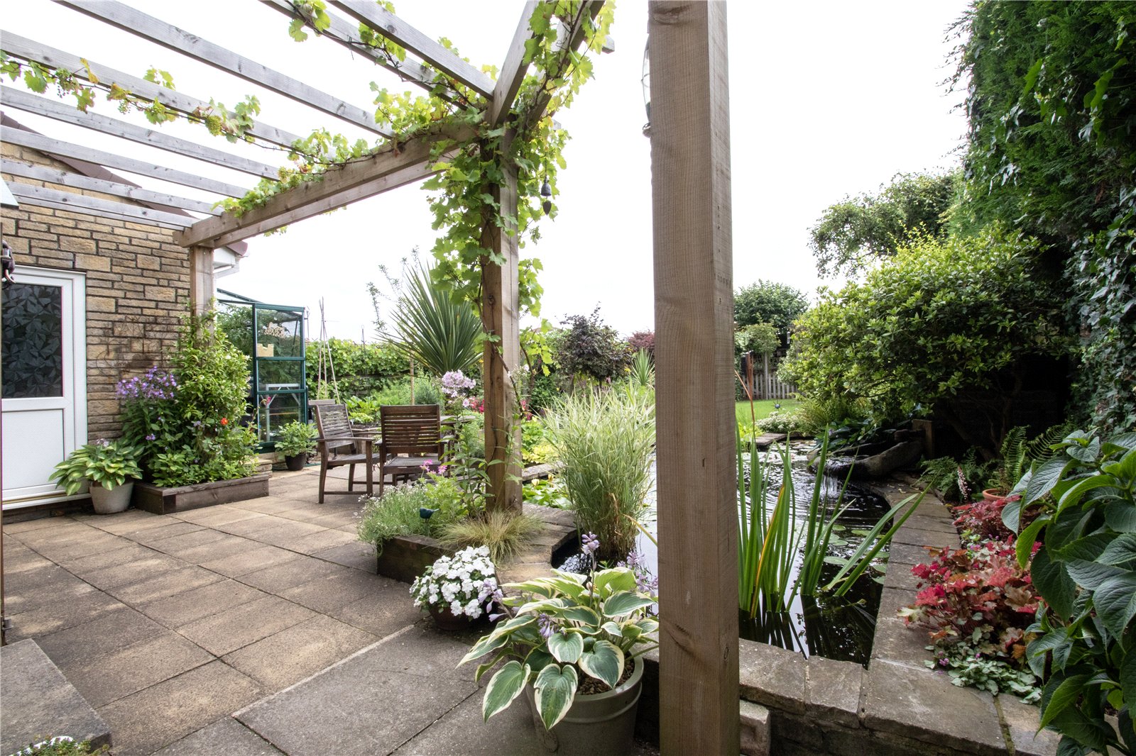 To the front of the property provides a double width concrete hardstanding driveway with block paving leading to an attached single garage. The rear provides an extremely private enclosed mature landscaped garden which includes principally lawned gardens with further fully stocked planted borders with boundary hedging, providing a number of flagged seating areas with an overhead pergola area, a soft fruit garden area with a variety of fruit trees and a further compost area. There is a timber storage shed, an aluminium greenhouse and raised vegetable beds. Access leads down the side of property via a flagged pathway with secure side gate and an external storage room.