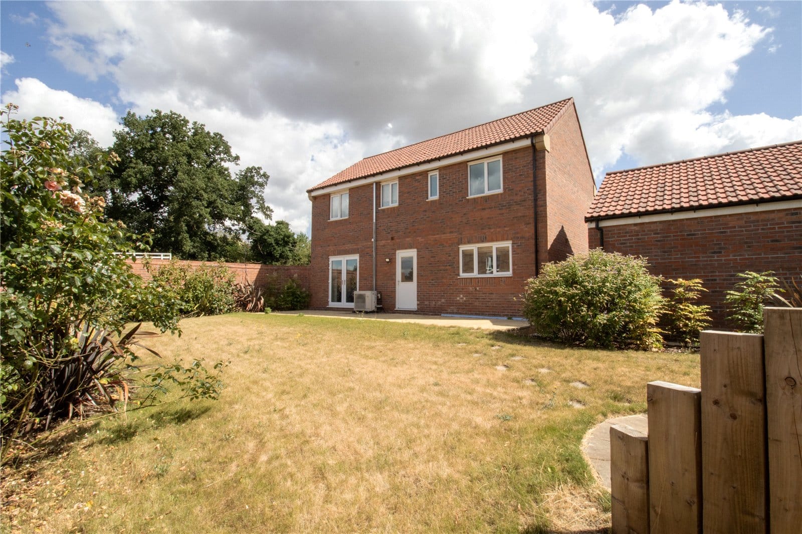 Set on a generous corner plot, the home enjoys wrap-around gardens and a beautifully landscaped, enclosed rear garden—mainly laid to lawn with a patio area ideal for outdoor entertaining. A detached double garage provides ample off-road parking and additional storage.