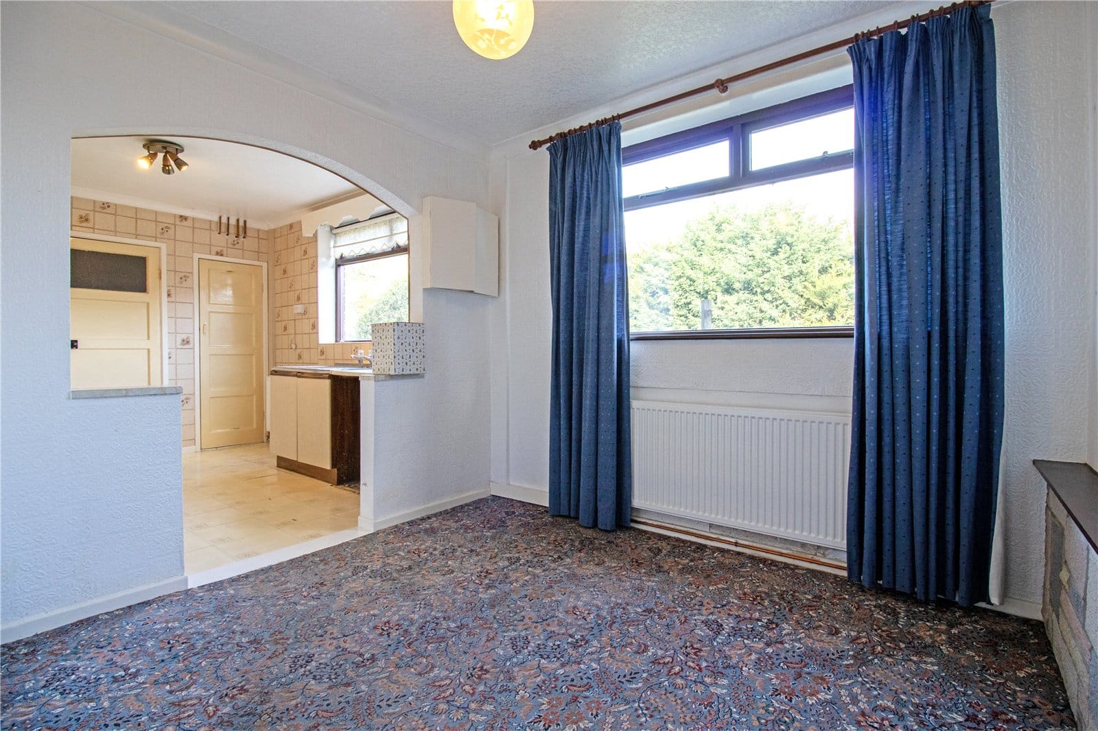 The ground floor offers an entrance porch, hallway, spacious living room, fitted kitchen, separate dining room, and storage. Upstairs are three good-sized bedrooms and a family bathroom.