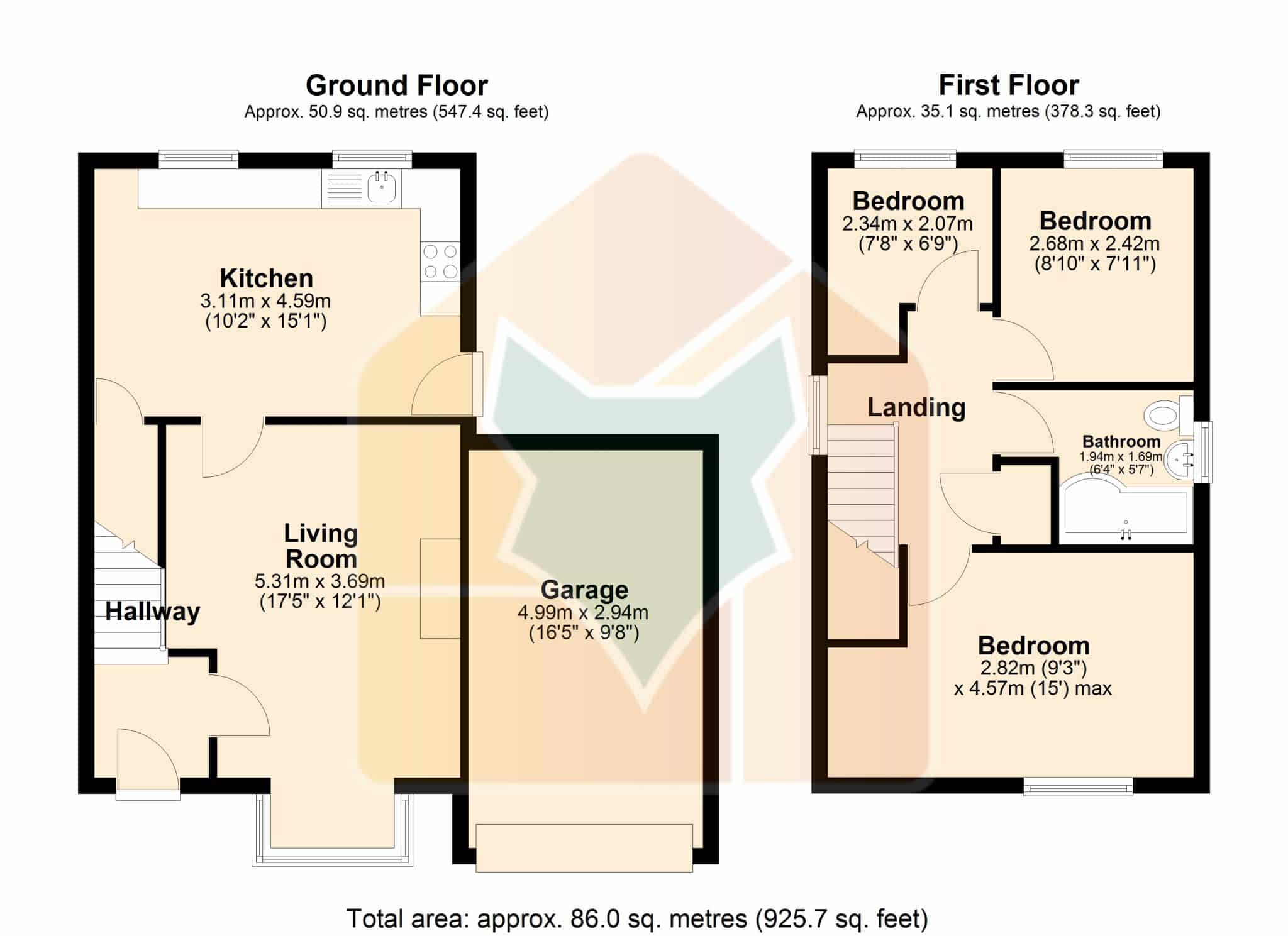 Dimensions: 4.99m x 2.94m.