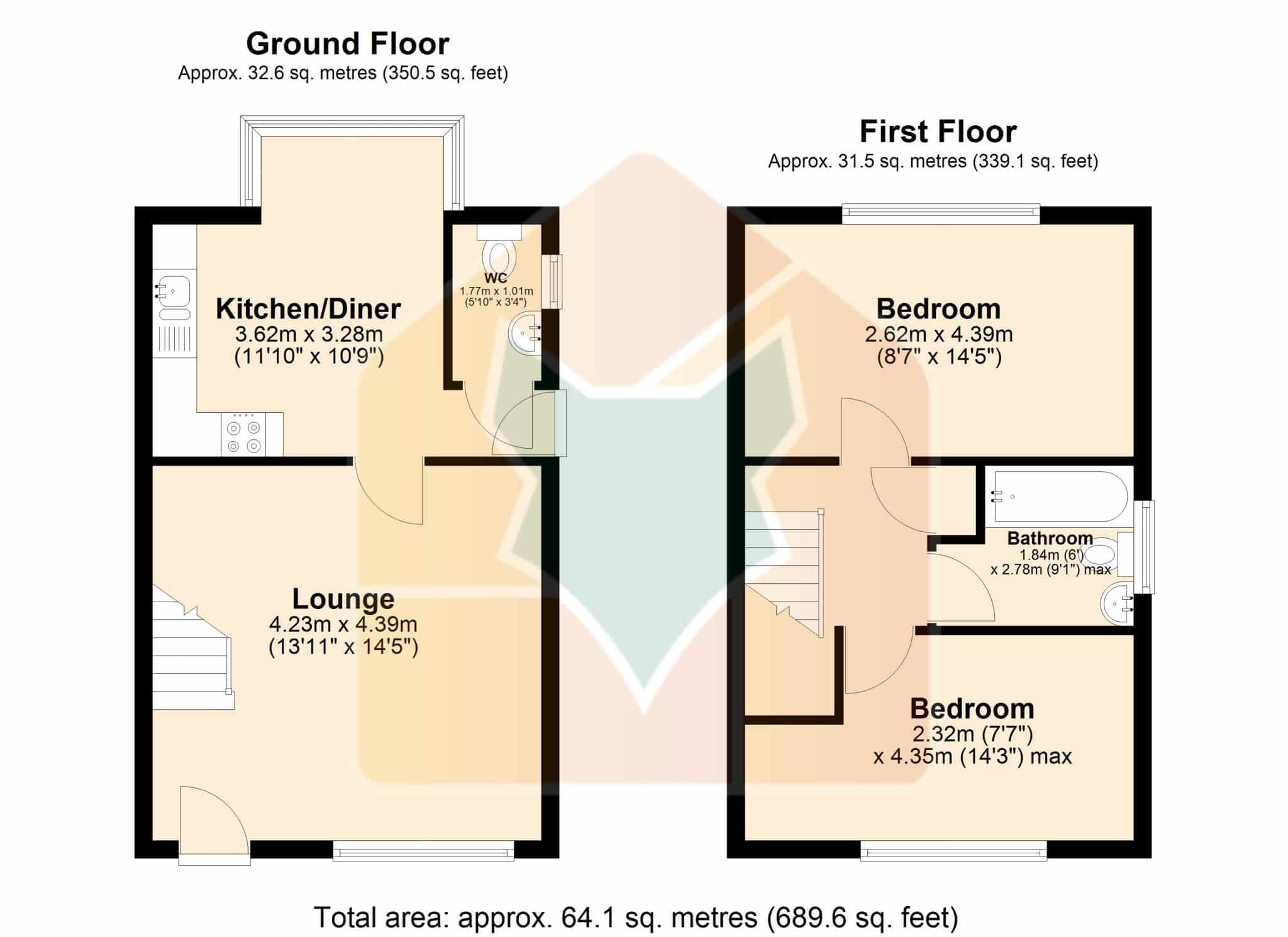 Internally, the home briefly comprises a spacious lounge, a modern fitted dining kitchen, and a ground floor WC. To the first floor are two generous double bedrooms served by a contemporary family bathroom suite.