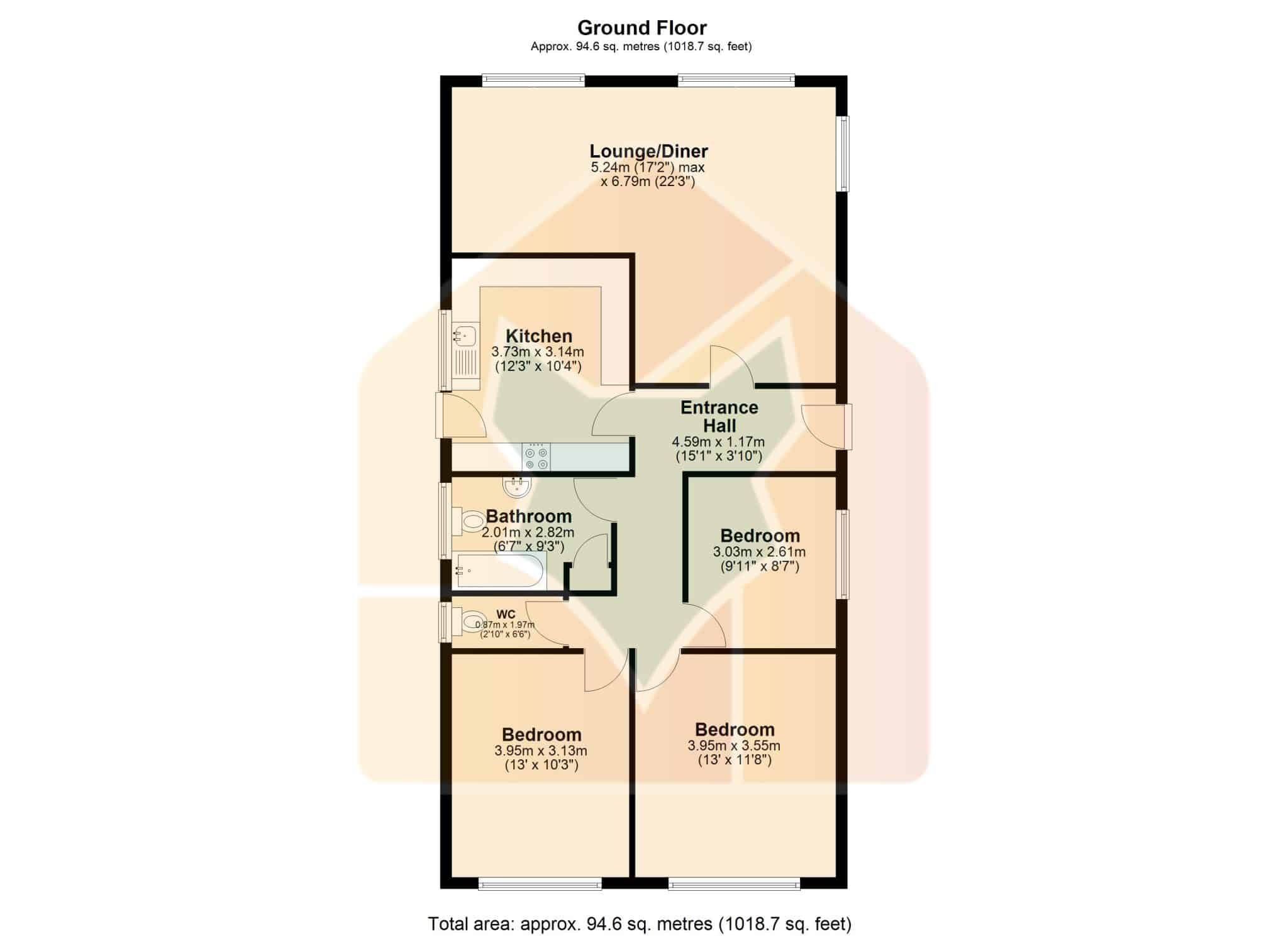 Dimensions: 3.95m x 3.13m.