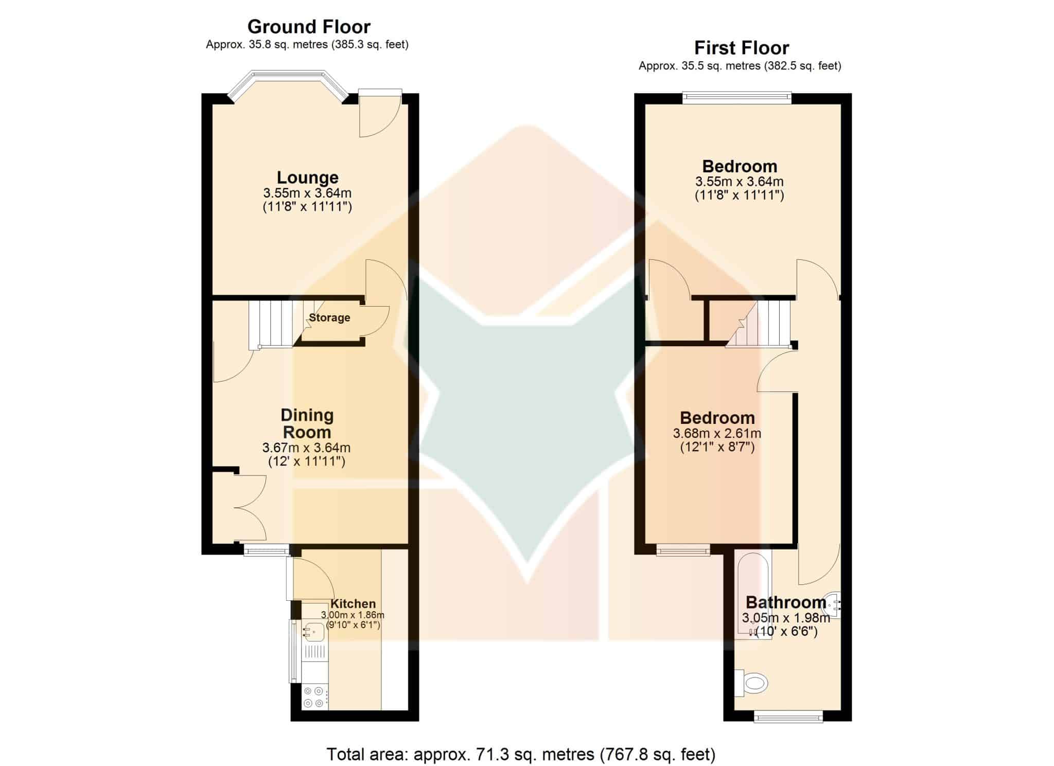 Bedroom 2 12' 1" x 8' 7" (3.68m x 2.61m)