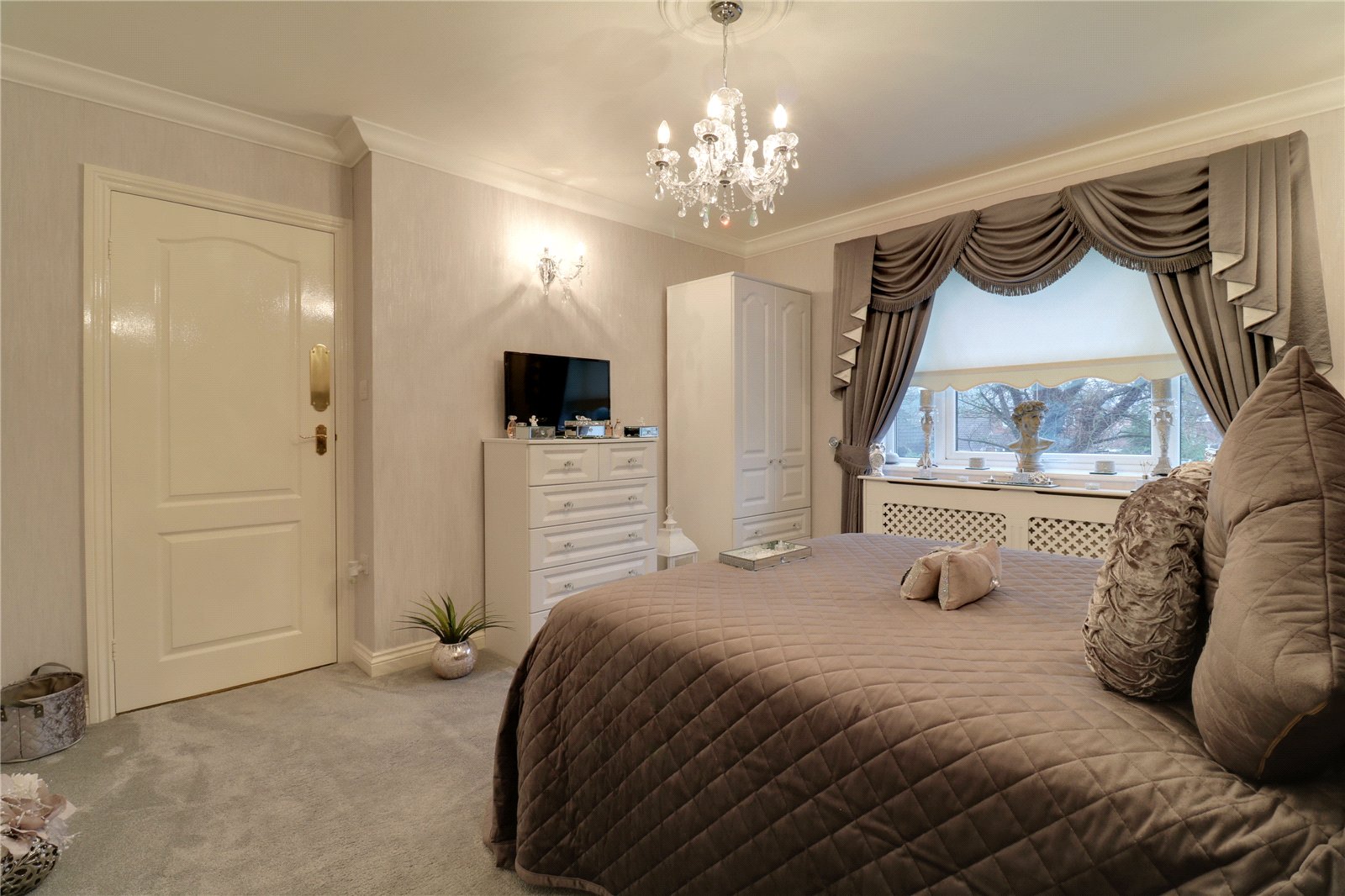 Has a front uPVC double glazed window, three double wall lights, wall to ceiling coving and TV input.