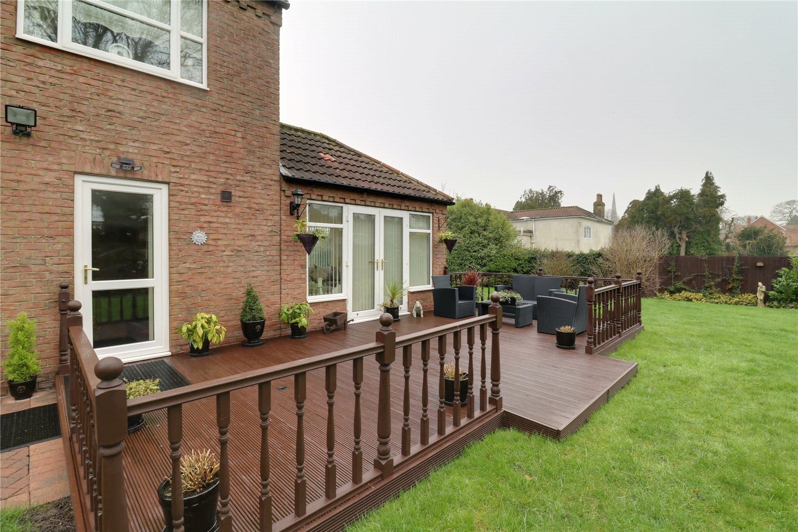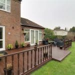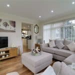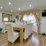 Dimensions: 3.4m x 3.7m. With surrounding uPVC double glazed windows and rear French doors allowing further access to the decked seating area, continuation of laminate flooring, inset ceiling spotlights and TV input.