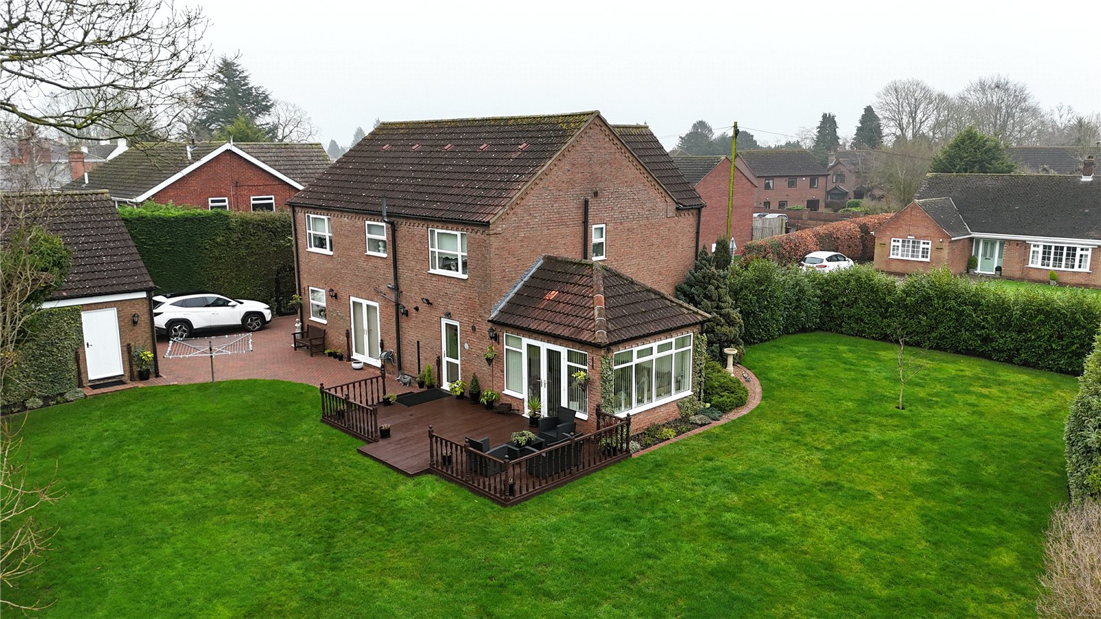'High Gate House' is an attractive executive family residence, located on a pleasant, elevated plot within the popular village of Ulceby. The individually designed property provides immaculately presented and well-proportioned living accommodation, thought ideal for a professional couple or growing family. The ground floor briefly comprises, central entrance hall, superb open-plan kitchen-dining room leading through to a fantastic sunroom overlooking the garden. Further to the ground floor is a rear entrance lobby, handy utility room, cloakroom, bay fronted sitting/family room and a spacious main lounge. The first floor provides a fantastic gallery landing leading off to four double-sized bedrooms, the master benefiting from an en-suite shower room, and there is a quality four-piece family bathroom. The property benefits from a generous block-paved swing in drive allowing ample parking leading to a large detached double garage with potential to develop the first-floor level (subject to necessary consents). The rear garden enjoys a variety of pleasant seating areas with well-kept wrap around lawns and mature planted boundary hedging providing an excellent degree of screening. Finished with modern uPVC double glazing & modern gas central heating. EPC Rating: C. Council Tax Band: E. Viewing comes highly recommended via our Barton Office - 01652 635000.