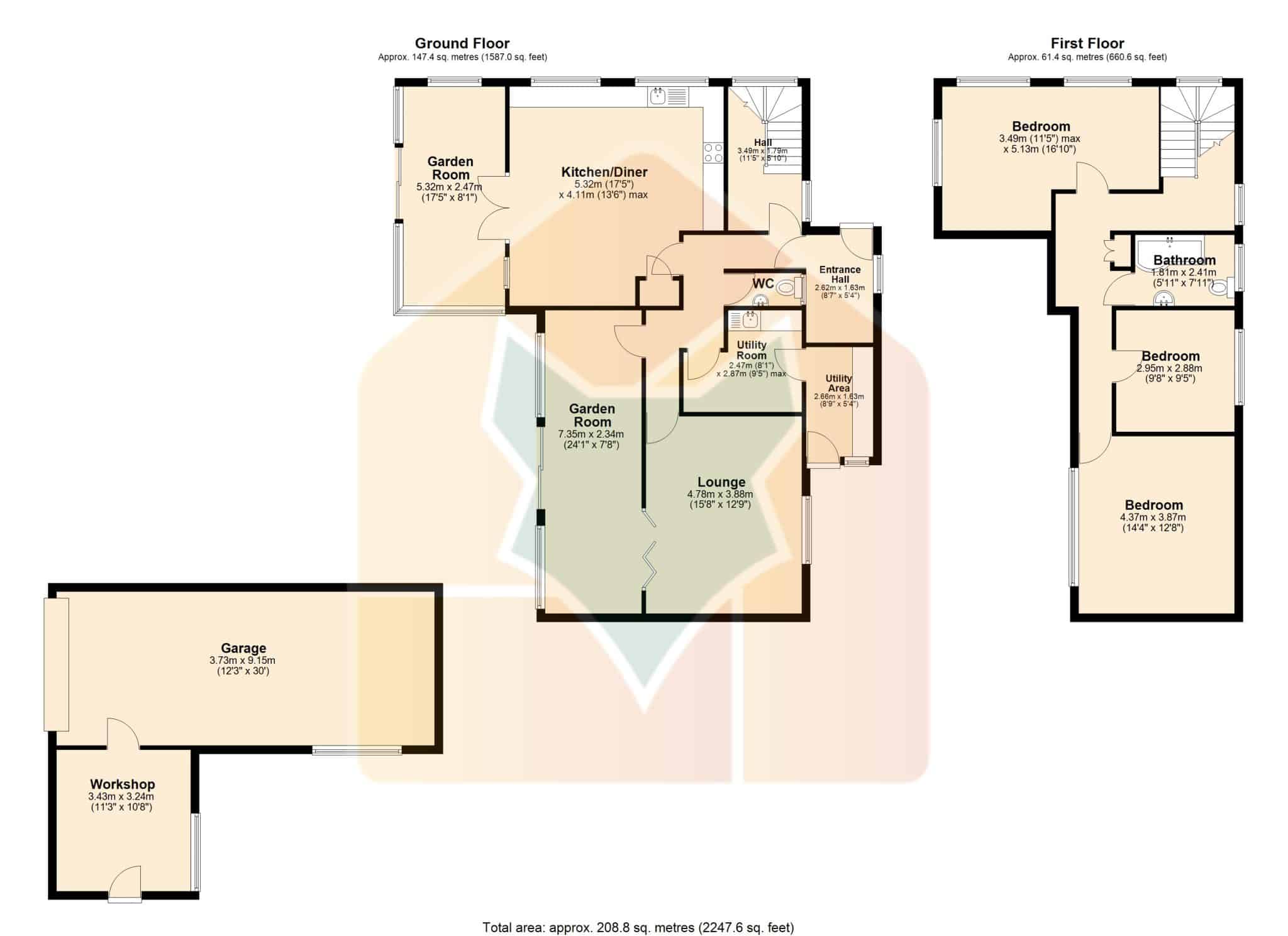 The accommodation briefly comprises an entrance porch, hallway, spacious lounge, two garden rooms, a generous kitchen/diner, two utility areas, and a ground floor WC. On the first floor, there are three well-sized bedrooms, all served by a family bathroom suite.