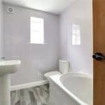 Enjoys a two piece modern suite comprising a low flush WC and vanity wash hand basin.