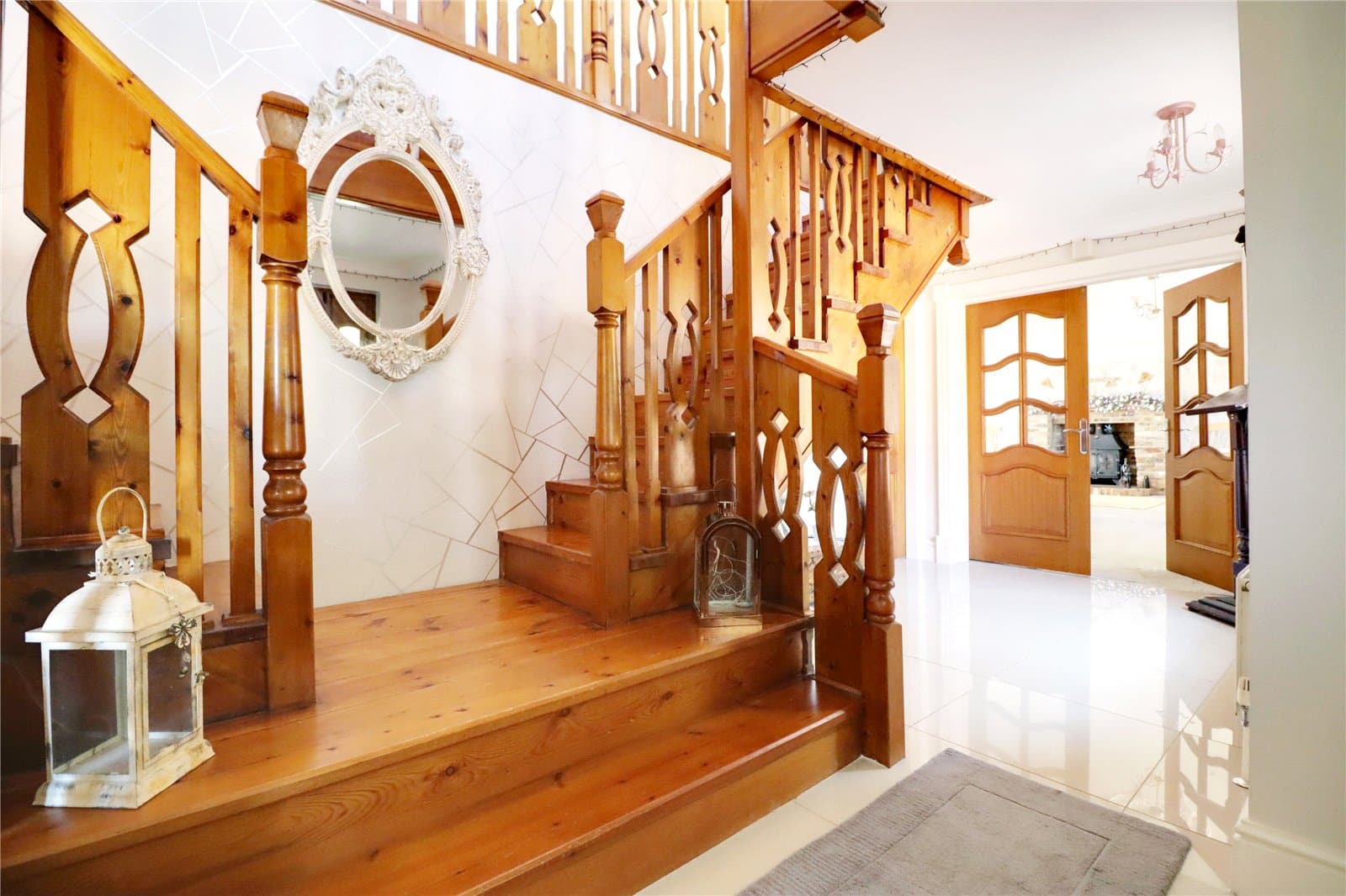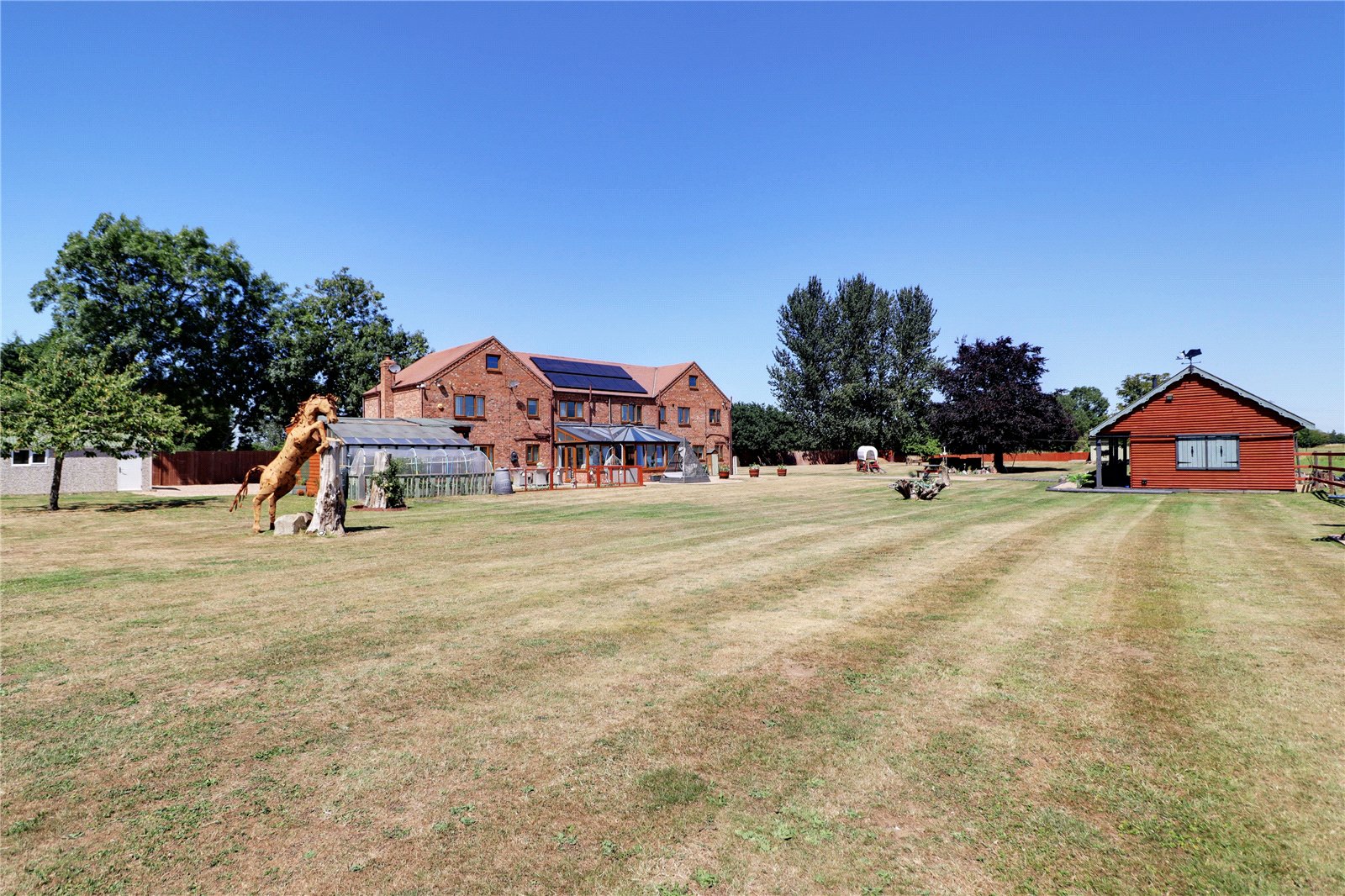 To the property enjoys extensive gardens with adjoining countryside to the side and rear creating excellent views and is entered via impressive wrought iron decorative double opening electric gates between brick pillars with open ball tops and onto a substantial driveway that allows parking for numerous vehicles on which continues onto a pebbled driveway leading to a large garage. The side and rear gardens are principally laid to lawn with manageable borders.
