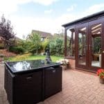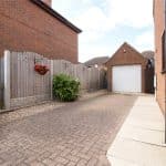 Externally, the home features a neat lawned frontage with a block-paved driveway providing ample off-road parking and access to a detached garage. The enclosed rear garden has been thoughtfully landscaped, with a well-maintained lawn, paved patio seating area—perfect for entertaining—and a useful potting shed.