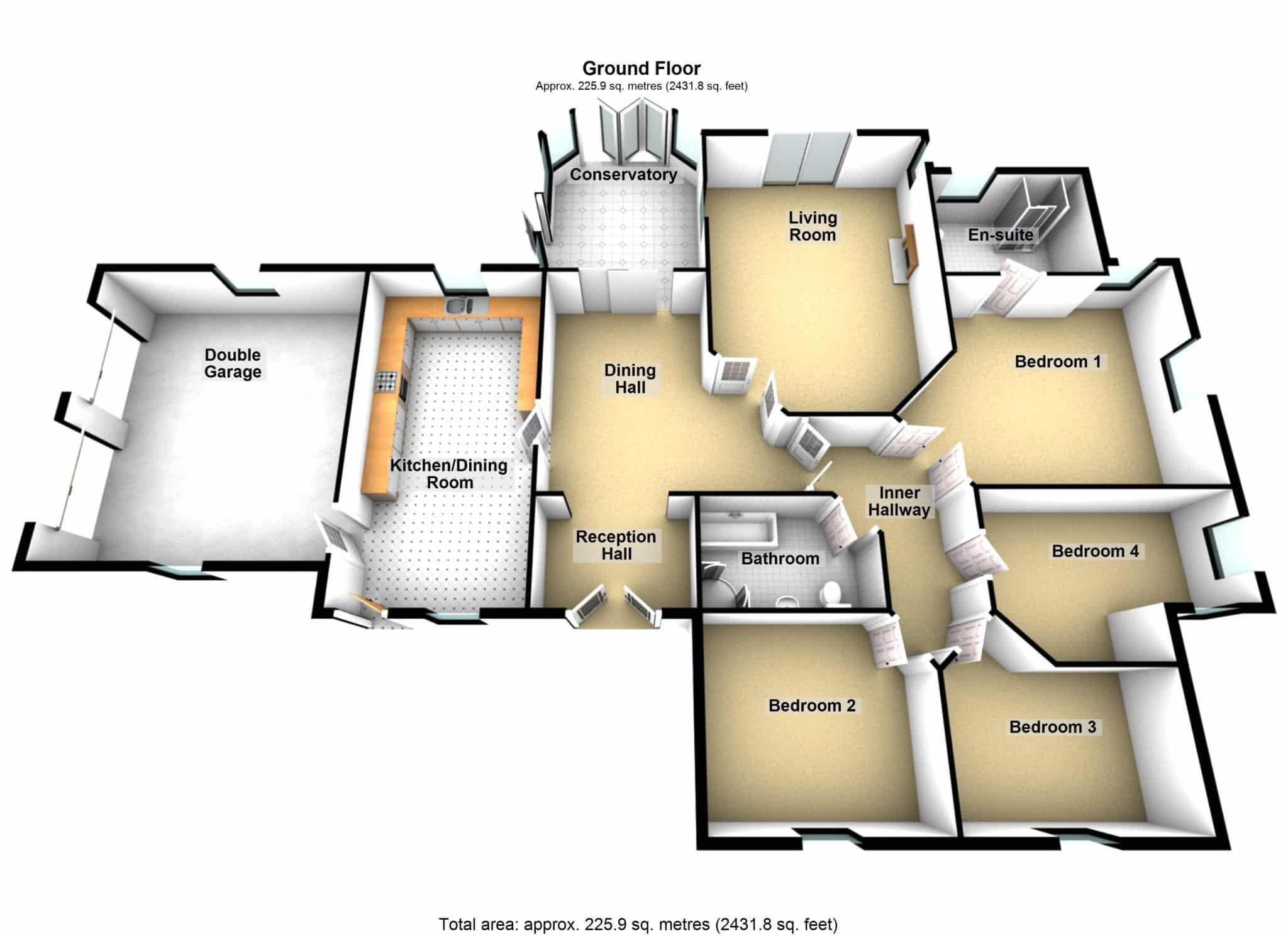 With low level bricked walling with above wood grain effect uPVC double glazed surrounding windows, side entrance door and bi-folding rear doors all allowing access to the garden, tiled flooring, polycarbonate hipped and pitched roof and central light.
