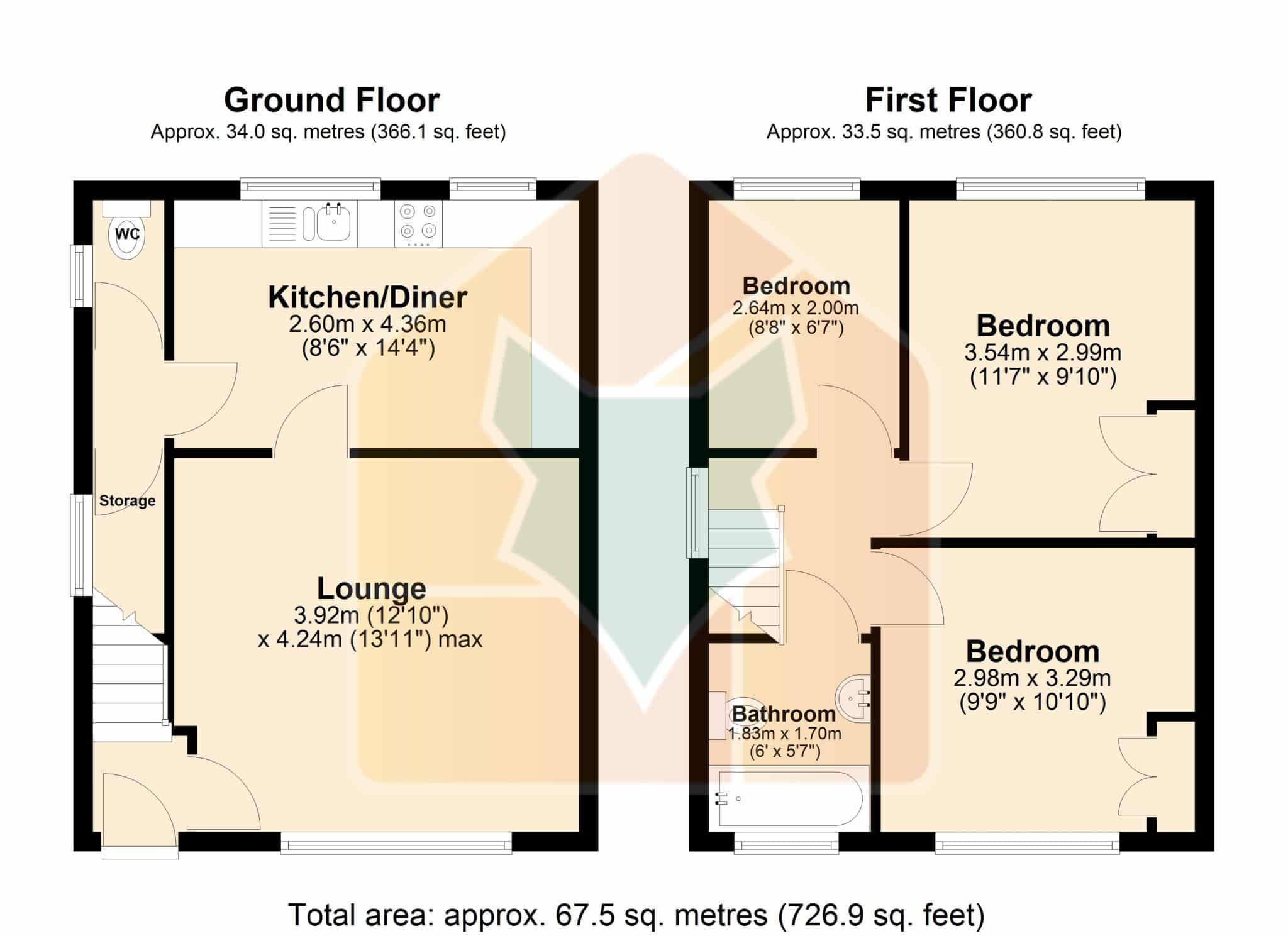 The property features a welcoming entrance hall, a generously sized lounge, a kitchen-diner, and a convenient ground floor W.C. Upstairs, there are three well-proportioned bedrooms served by a family bathroom suite.