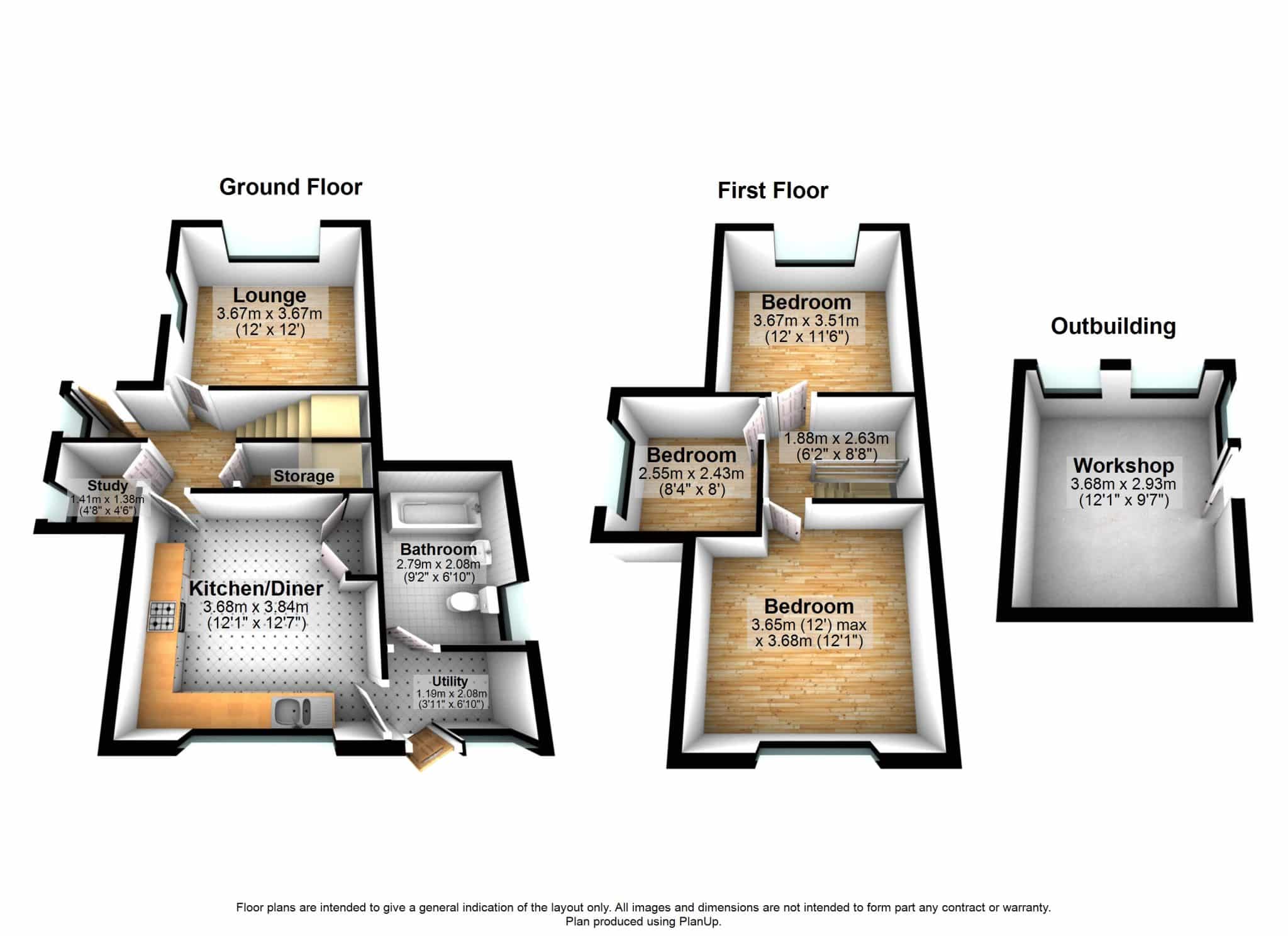 Brick-built workshop with wood effect vinyl flooring, internal power with multiple sockets and lighting, dual aspect side and rear windows and a solid wood personnel door. The property has the benefit of a useful wood storage shed.