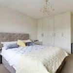 Front uPVC double glazed window, enjoys extensive fitted bedroom furniture of a shaker style with brushed aluminium style pull handles, TV point and doors through to;