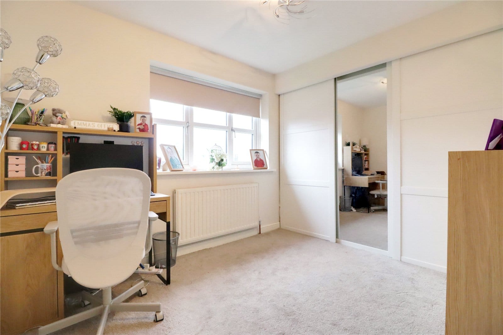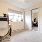 Rear uPVC double glazed window, fully fitted bank of wardrobes to one wall with sliding fronts.