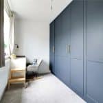 Front uPVC double glazed window and enjoys quality fitted navy blue wardrobes to one wall with brushed gold effect pull handles.