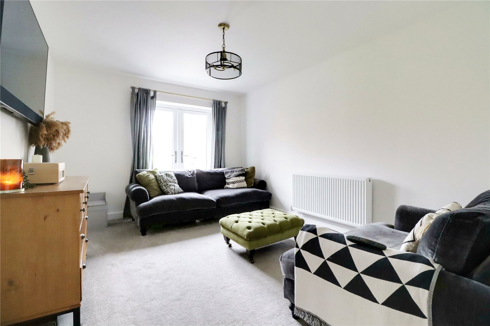Rear uPVC double glazed French doors allowing access to the garden and TV point.