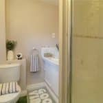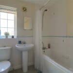 With a front uPVC double glazed window with frosted glazing, a three piece suite comprising a low flush WC, an oval wash hand basin and a single walk-in shower cubicle with overhead chrome mains shower.