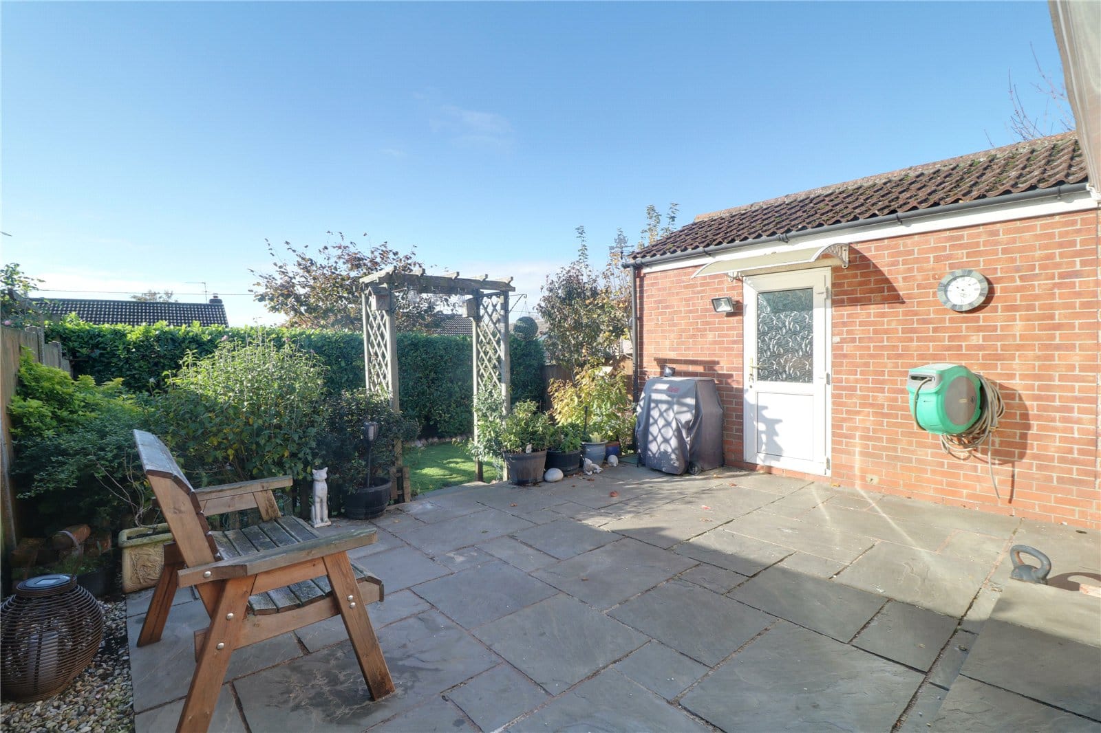 The rear garden has a raised flagged patio area, a well kept principally lawned garden with surrounding planted borders, surrounding fencing with border hedging allowing further privacy. The front provides a block paved driveway leads to the single garage.