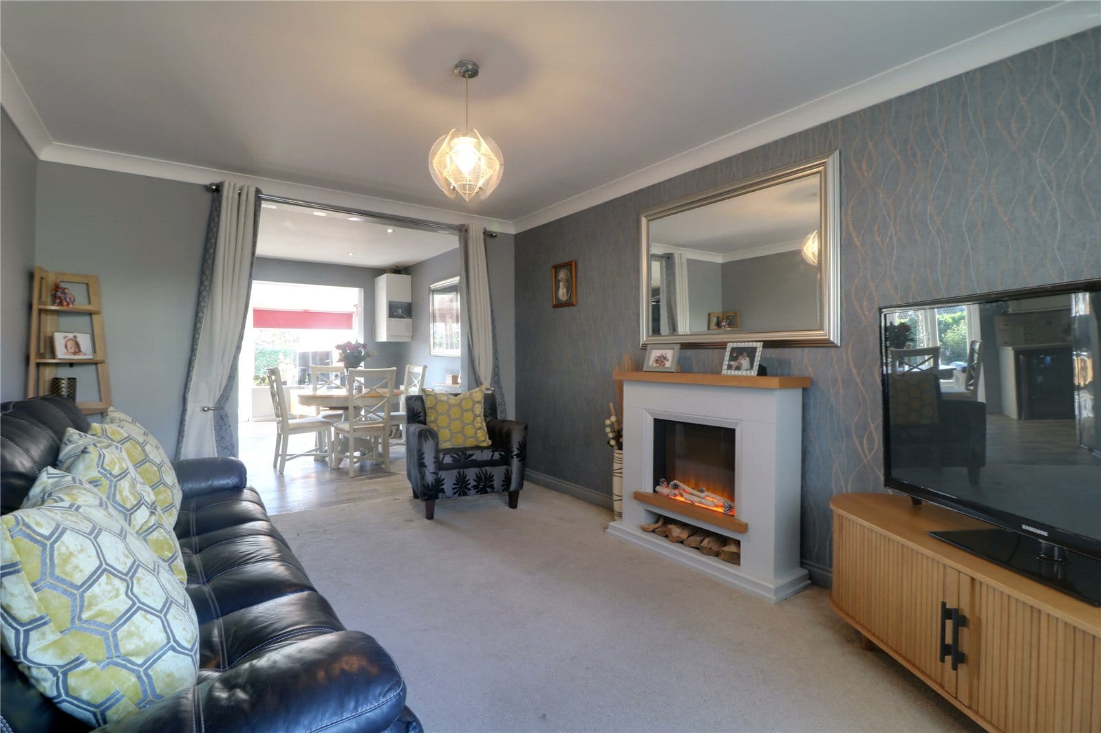 With a front uPVC double glazed window, wall to ceiling coving and an attractive electric log effect fireplace with decorative surround and oak style mantel.